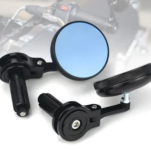 Premium CNC metal handlebar end rearview mirror with anti-glare glass, vibration-resistant build, and universal motorcycle fitment.