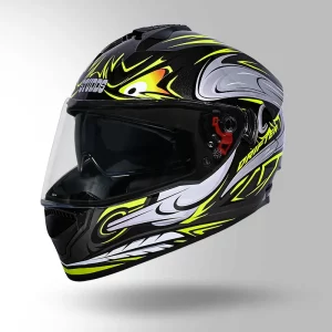 Discover the Studds Raider Gloss Black Helmet: a full-face, two-wheeler helmet with an aerodynamic spoiler and clear visor. Perfect for riders seeking style, safety, and comfort. Lightweight, durable, and designed for all types of riders.