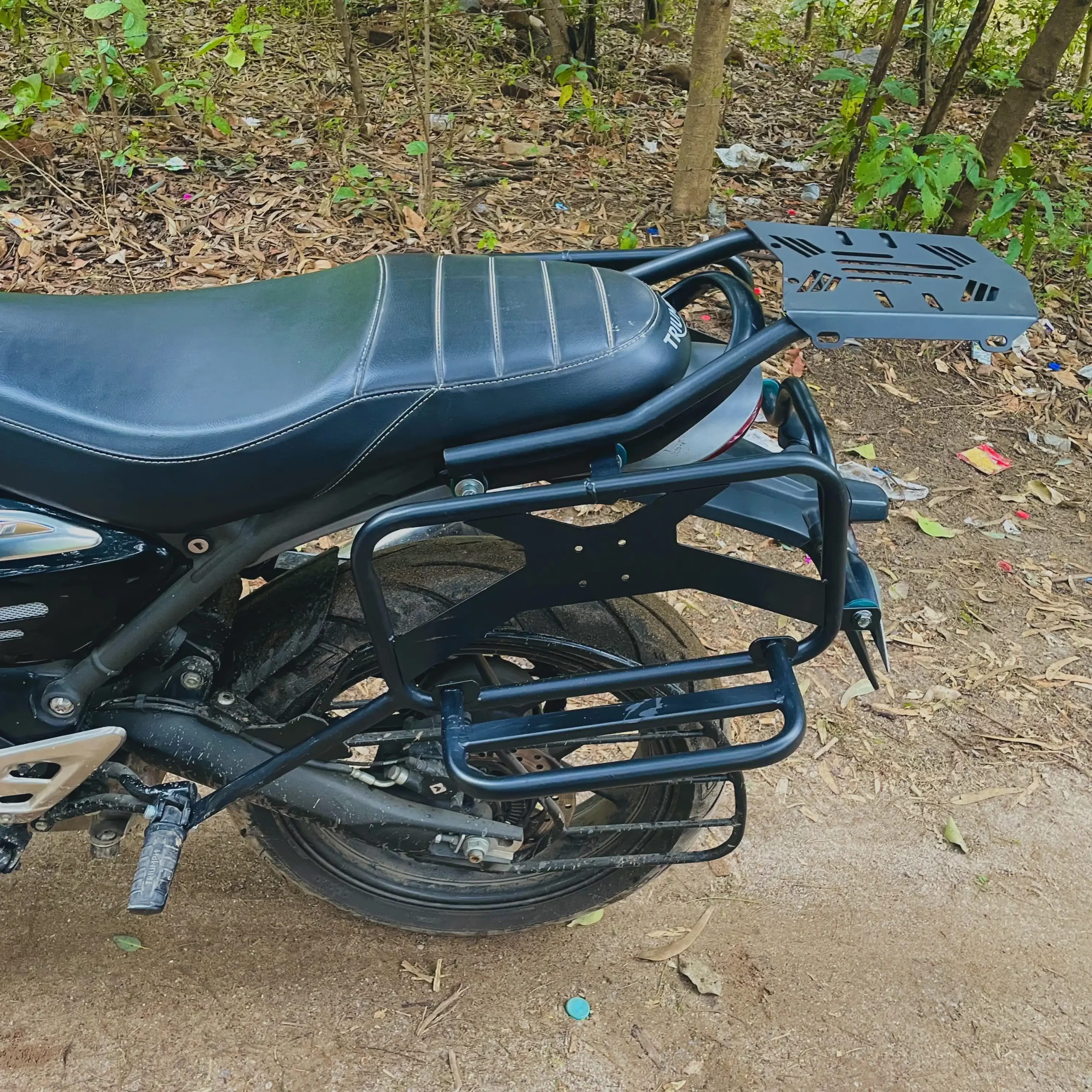 Introducing the Triumph 400-Sarkkart Back Carrier, a versatile and stylish accessory designed to enhance the touring capabilities of your motorcycle. Crafted with precision and exclusively tailored for the Triumph 400, this Back Carrier from the Sarkkart series seamlessly combines functionality with a sleek design, offering a perfect balance for riders who demand both performance and style.