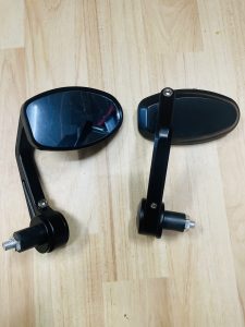The Sarkkart Rearview Mirror is specifically designed to fit on handlebar end grips, offering a sleek, minimalistic look while enhancing your bike’s aesthetics. The mirror’s anti-glare coating reduces unwanted reflections, ensuring a clear view of the road behind you.