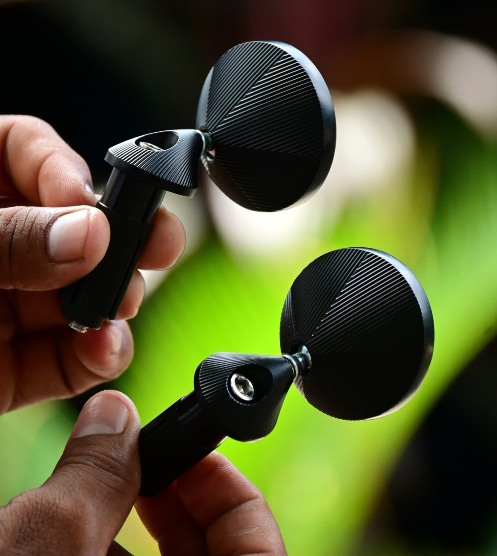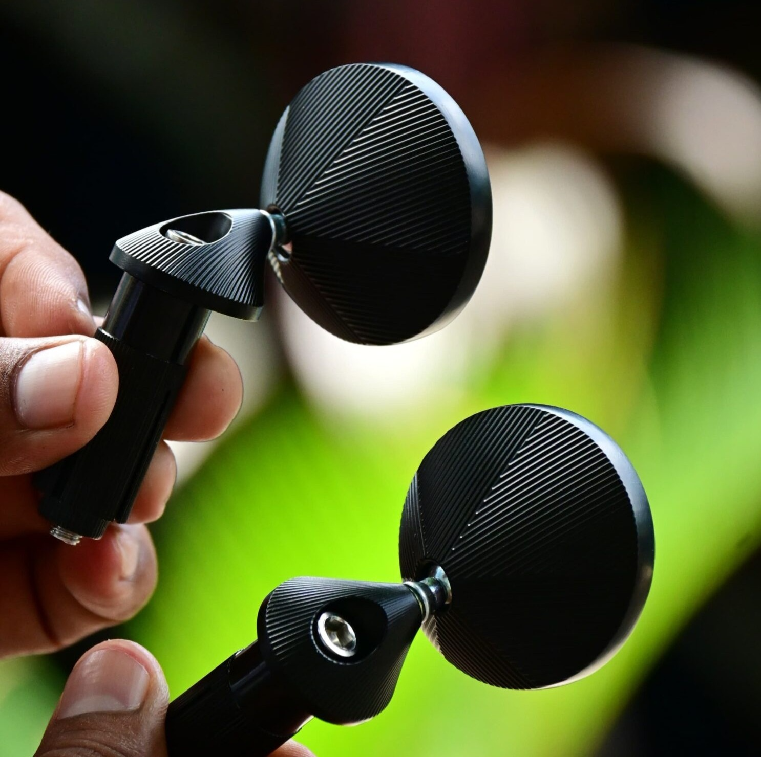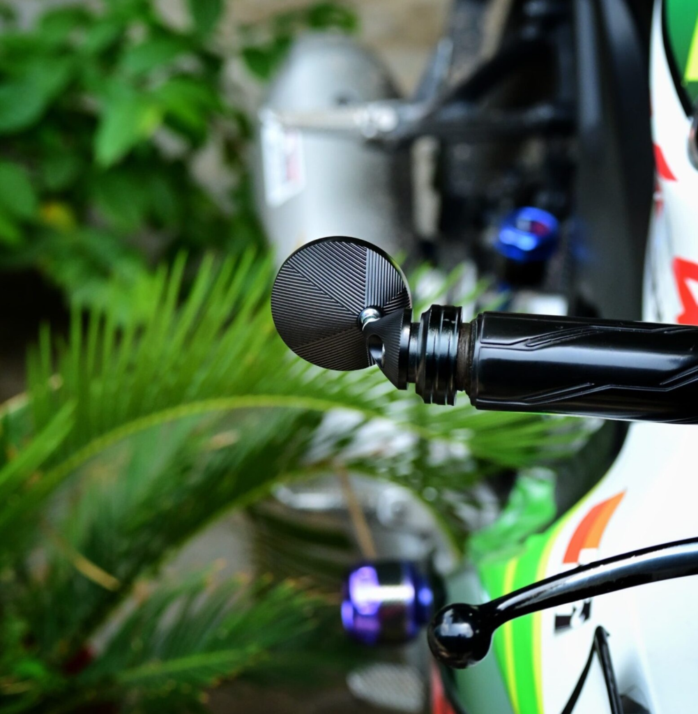 Ideal for street bikes, cruisers, cafe racers, scooters, and naked motorcycles, this mini bar-end mirror adds a modern and functional upgrade to your ride.