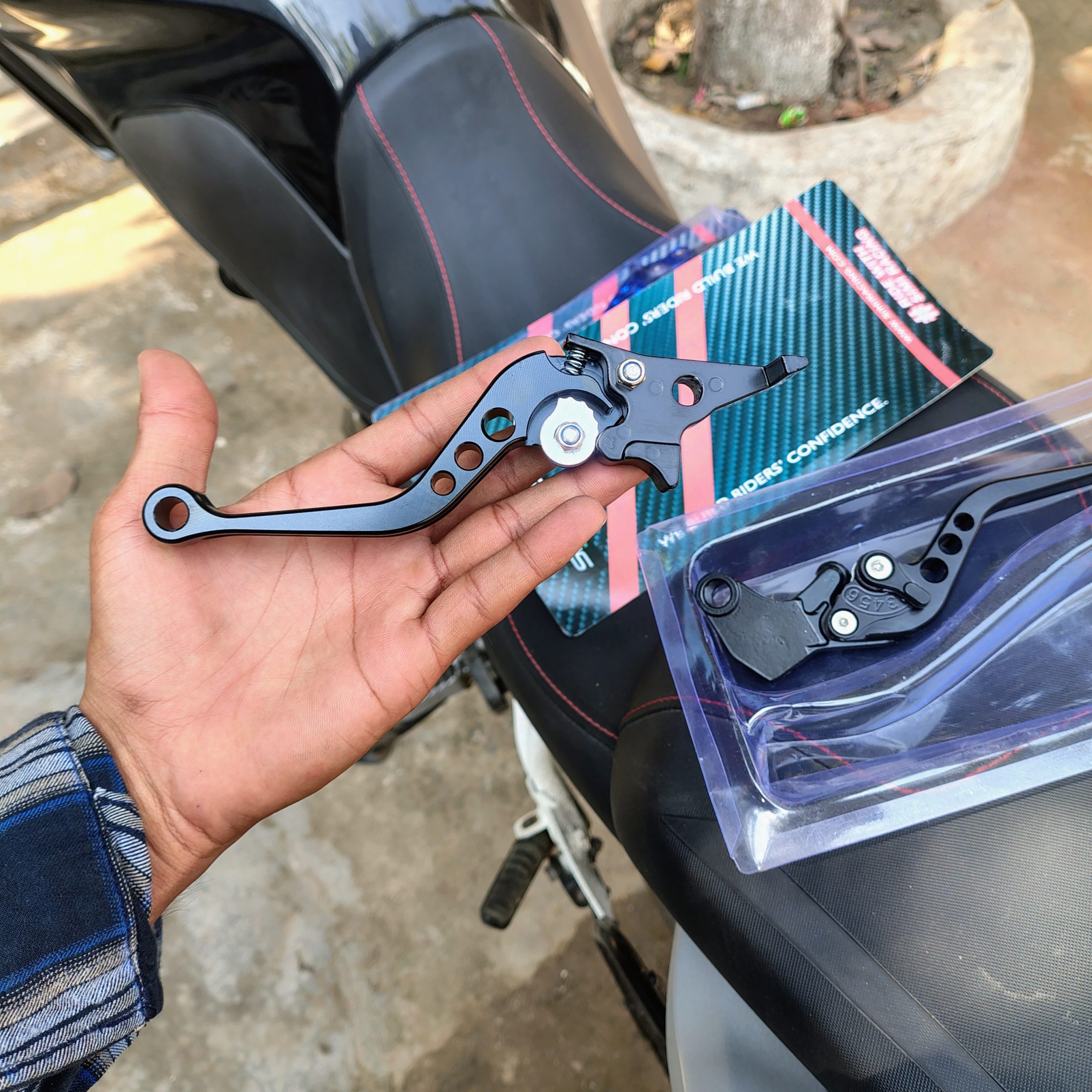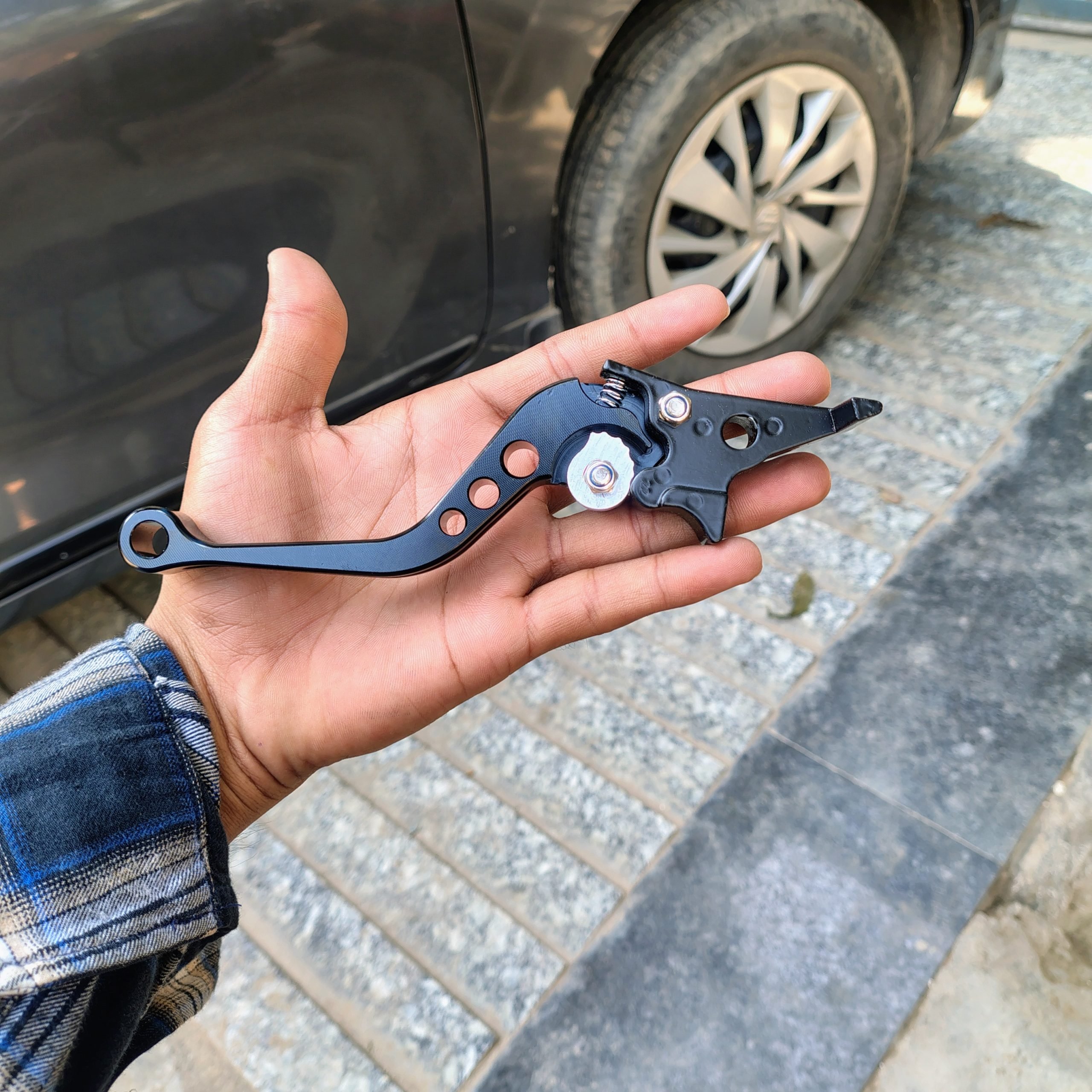 The Sarkkart XSR 155 Brake Lever – Black Adjustable Brake Handle is a high-quality replacement component designed to improve braking control and enhance the look of your Yamaha XSR 155. This brake lever is crafted from durable metal with a sleek black powder-coated finish that resists scratches, rust, and everyday wear, making it ideal for daily commuting and long rides.