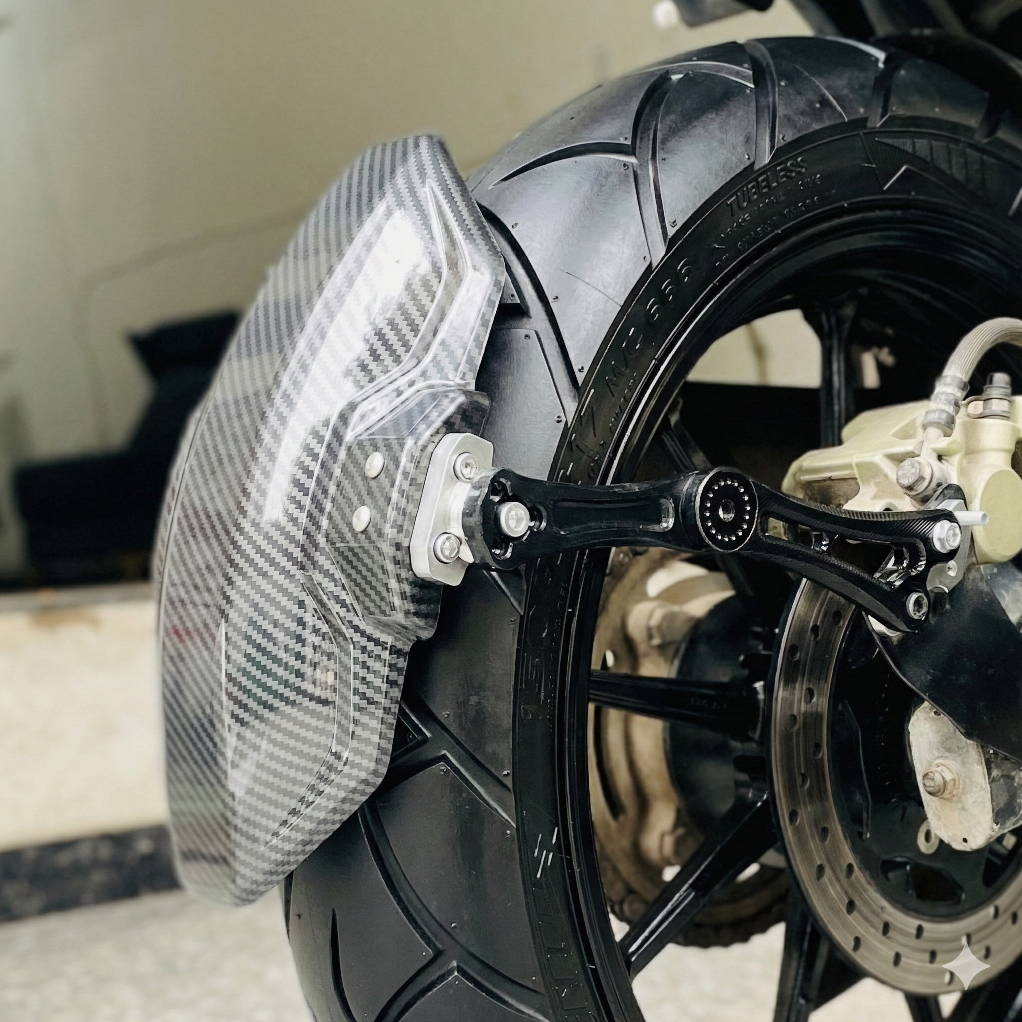 Upgrade your motorcycle with the SARKKART 2024 Carbon Fiber Tyre Hugger. This universal rear mudguard features a premium carbon fiber finish for enhanced durability, protection, and a sleek look. Perfect for all motorcycle models, it prevents dirt and debris while adding style to your ride.