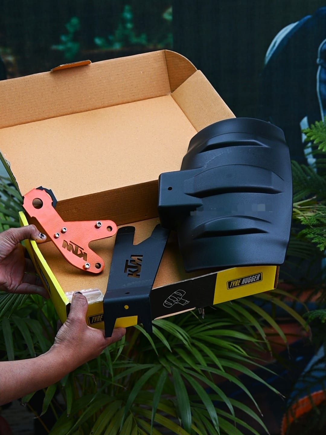 Made from high-quality, durable materials, the Sarkkart Tyre Hugger is built to withstand the rigors of everyday riding. Its robust construction ensures longevity, making it a smart investment for any KTM rider.