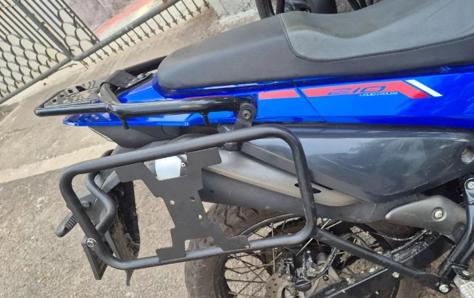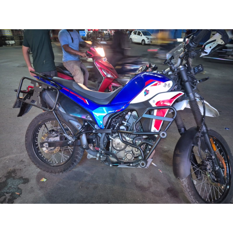 Hero Xpulse 210 Saddle Stay by Sarkkart – Heavy-Duty Powder-Coated Luggage Support with Exhaust/Wheel Clearance & Touring-Ready Pannier Stability