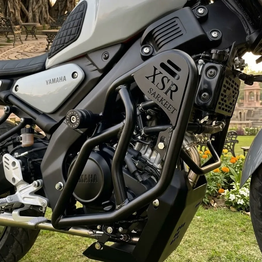 The Sarkkart XSR155 C Heavy Crash Guard is designed to provide strong protection to the engine and lower frame of your motorcycle. Built specifically for the Yamaha XSR 155, this heavy-duty crash guard helps protect vital components during accidental drops, minor crashes, or impacts while riding on rough roads. A crash guard is one of the most important protective accessories for any motorcycle. It acts as a protective frame around the engine area, reducing the chances of damage to the engine casing, frame, and other critical components if the motorcycle falls or collides with obstacles. This crash guard is constructed from heavy-duty metal tubing, engineered for strength and durability. The solid build allows it to absorb and distribute impact energy effectively, helping reduce the chances of damage to the motorcycle’s main components. The design is specifically compatible with Yamaha XSR 155, ensuring accurate fitment and alignment with the motorcycle’s frame. It integrates well with the bike’s structure without interfering with engine performance, riding comfort, or ground clearance. The guard also adds a rugged and muscular appearance to the bike, enhancing the overall look while providing practical protection. Its durable finish helps resist rust and wear, ensuring long-lasting performance even in challenging riding environments. Installation is straightforward and uses the existing mounting points on the motorcycle, allowing secure installation without major modifications. Whether you ride daily in city traffic or take your bike on longer touring rides, the Sarkkart XSR155 C Heavy Crash Guard provides the protection and confidence riders need. Key Features Designed for Yamaha XSR 155 Heavy-duty crash guard for engine protection Strong metal frame construction Protects engine and lower body during falls Helps absorb and distribute impact energy Durable finish for long-term use Easy installation using stock mounting points Adds a rugged and protective look to the motorcycle