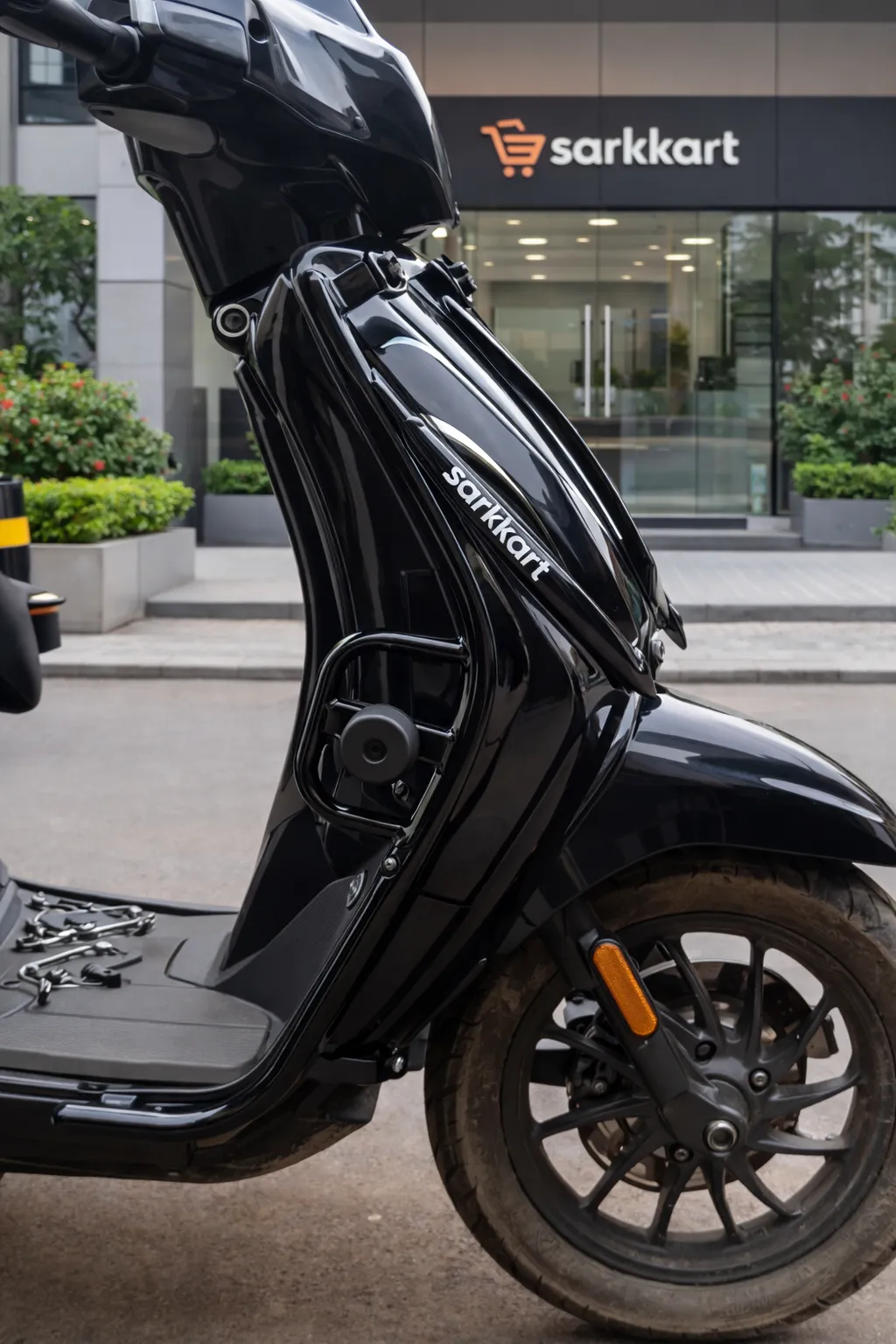 The Sarkkart Chetak 3501, 3502, 3503 Crash Guard with Fixed Footrest and Frame Slider Laggard is a comprehensive protection solution designed for Bajaj Chetak EV models 3501, 3502, and 3503. This robust crash guard set not only shields your scooter’s body from impacts, scratches, and minor falls but also includes fixed footrest and frame sliders to improve riding comfort and reduce damage during everyday use.
