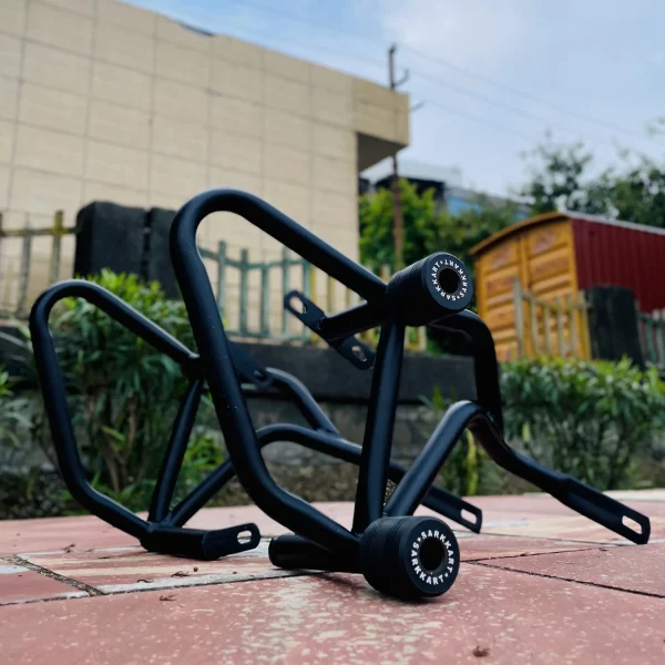 Sarkkart Original Premium Quality Bajaj Pulsar NS400 Rust-Free Crash Guard with 4 Solid Sliders (Black) is engineered for riders who prioritize safety and durability. Constructed from rigid mild steel, this crash guard boasts 25 mm thick tubes, providing exceptional strength and resilience. The 1.6 mm wall thickness, the highest in its class, ensures maximum protection against impacts, safeguarding your motorcycle during unforeseen incidents.
