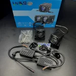 LIU HJG Blaze 1 80W LED Fog Light – Dual color white & yellow beam with laser spot + wide spread. Features red DRL, dual intensity, aluminium body, waterproof design, and universal fit for all cars & bikes.
