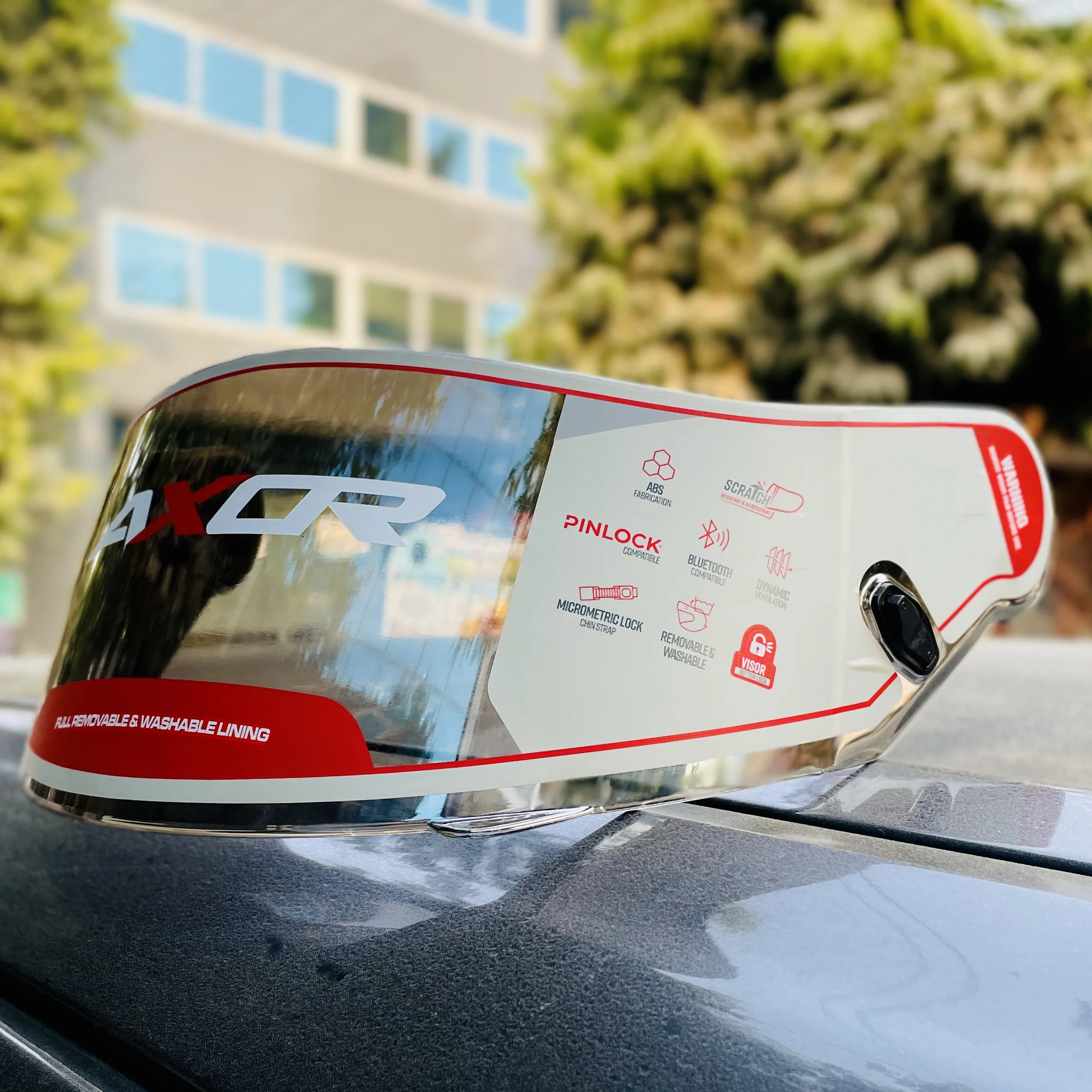 Enhance your Axor Apex helmet with the Axor Apex clear visor featuring advanced anti-fog technology for superior visibility in all weather conditions. This original replacement visor provides crystal-clear, distortion-free vision with scratch-resistant coating and UV protection, compatible with all Axor Apex helmet models.