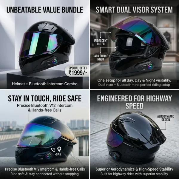 Dual Visor | Bluetooth Calling & Music | Comfortable Fit | Perfect for Daily & Highway Riding