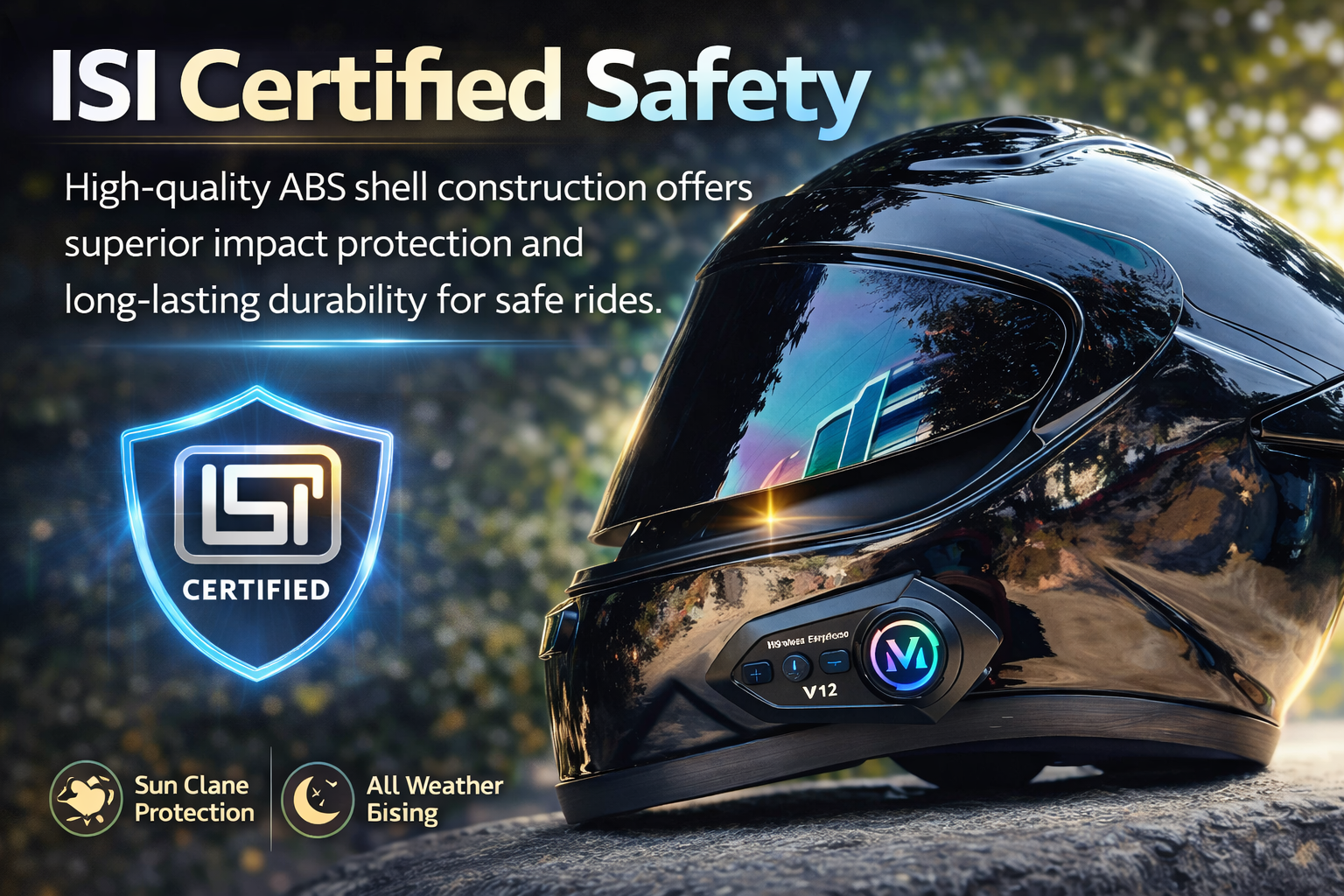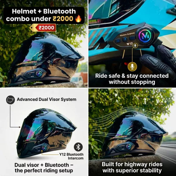 Motorcycle Helmet with Bluetooth (V12 Combo) – Best ISI Certified Riding Helmet in India