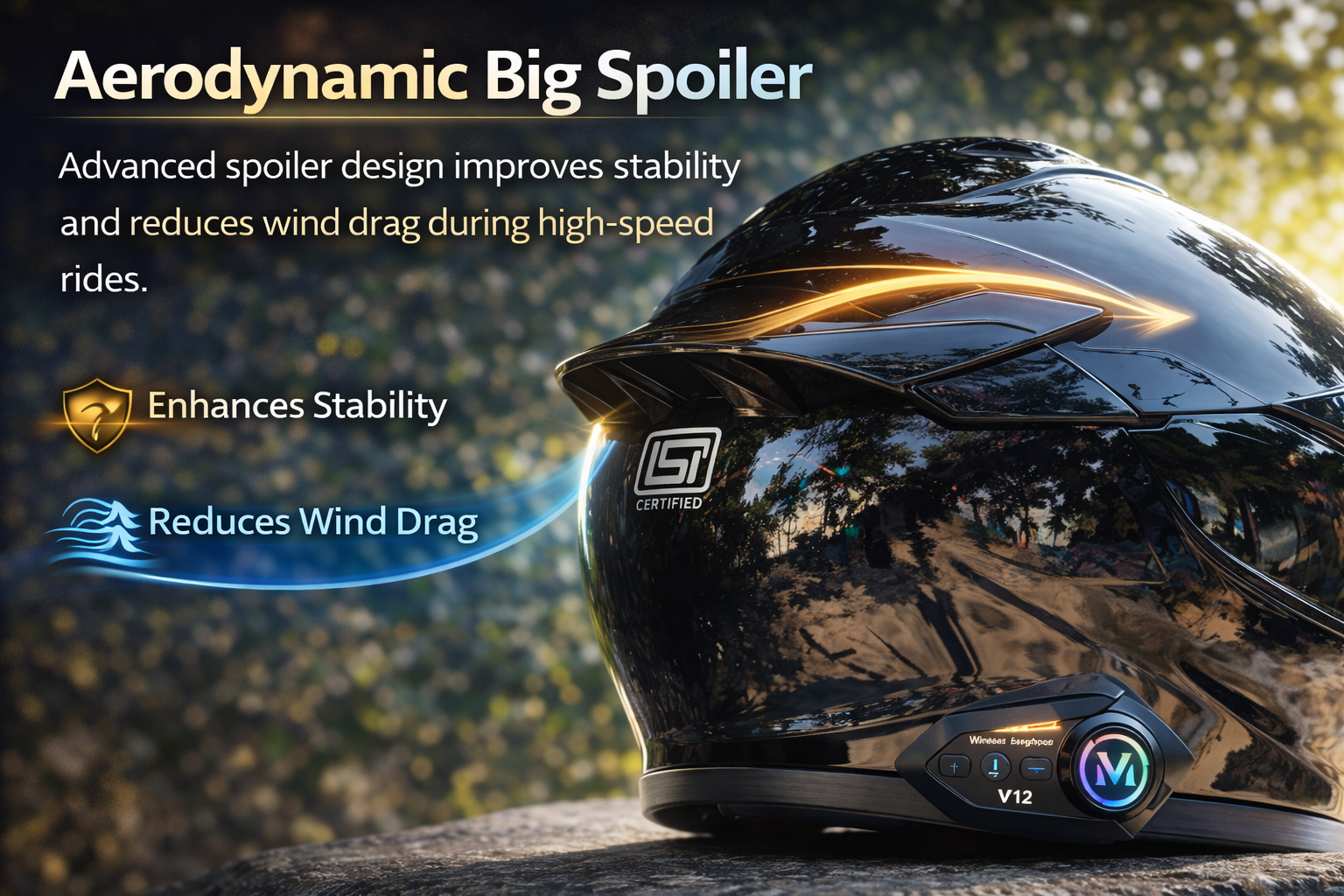 The aerodynamic spoiler design helps reduce wind drag and improves stability while riding at high speeds.