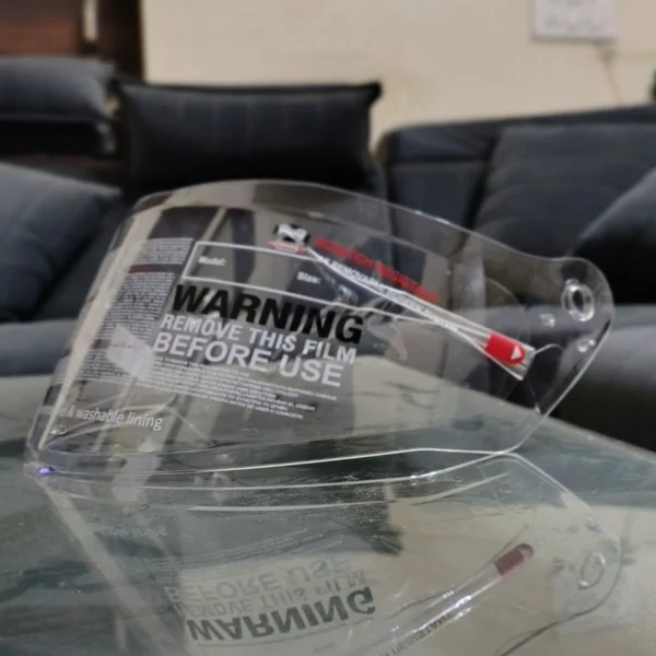 A helmet visor plays a crucial role in protecting the rider from dust, wind, insects, rain, stones, and harmful UV rays. This clear visor is manufactured using high-quality polycarbonate material, offering excellent impact resistance while maintaining superior optical clarity. It allows riders to maintain a distortion-free view of the road, especially during night rides and low-light conditions.