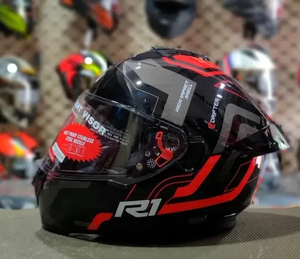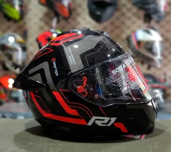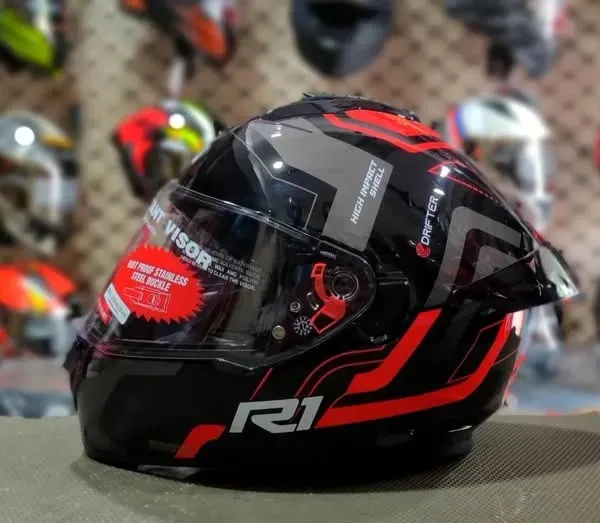 Ride with confidence and bold styling using the Drifter D4 R1 Black Red Helmet, designed to deliver a reliable combination of protection, comfort, and aggressive visual appeal. This helmet is crafted for riders who demand dependable head safety along with a modern sporty look suitable for both city riding and highway travel. The helmet features a durable outer shell engineered for strength and everyday riding durability. Its aerodynamic design supports stability and helps reduce wind resistance, contributing to a smoother riding experience at varying speeds. The black and red finish adds a dynamic and eye-catching appearance that complements a wide range of motorcycles. Inside, the helmet is equipped with comfortable padded interiors that provide a snug and secure fit. The inner liners are designed for extended wear, enhancing rider comfort during long rides and daily commuting. Ventilation channels promote airflow, helping manage heat and maintain a comfortable riding environment. The visor system offers clear visibility while protecting against wind, dust, and road debris. Built for daily usability, this helmet is ideal for riders seeking practical protection with standout styling. Key Benefits: Durable outer shell construction Aerodynamic and stable design Bold black red styling Comfortable padded interiors Ventilation for improved airflow Clear visor for road visibility Suitable for daily and highway riding