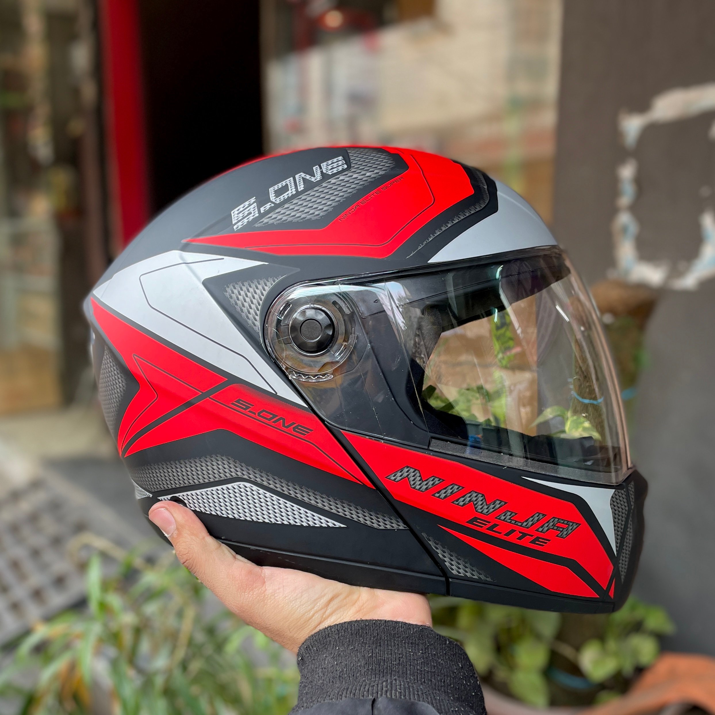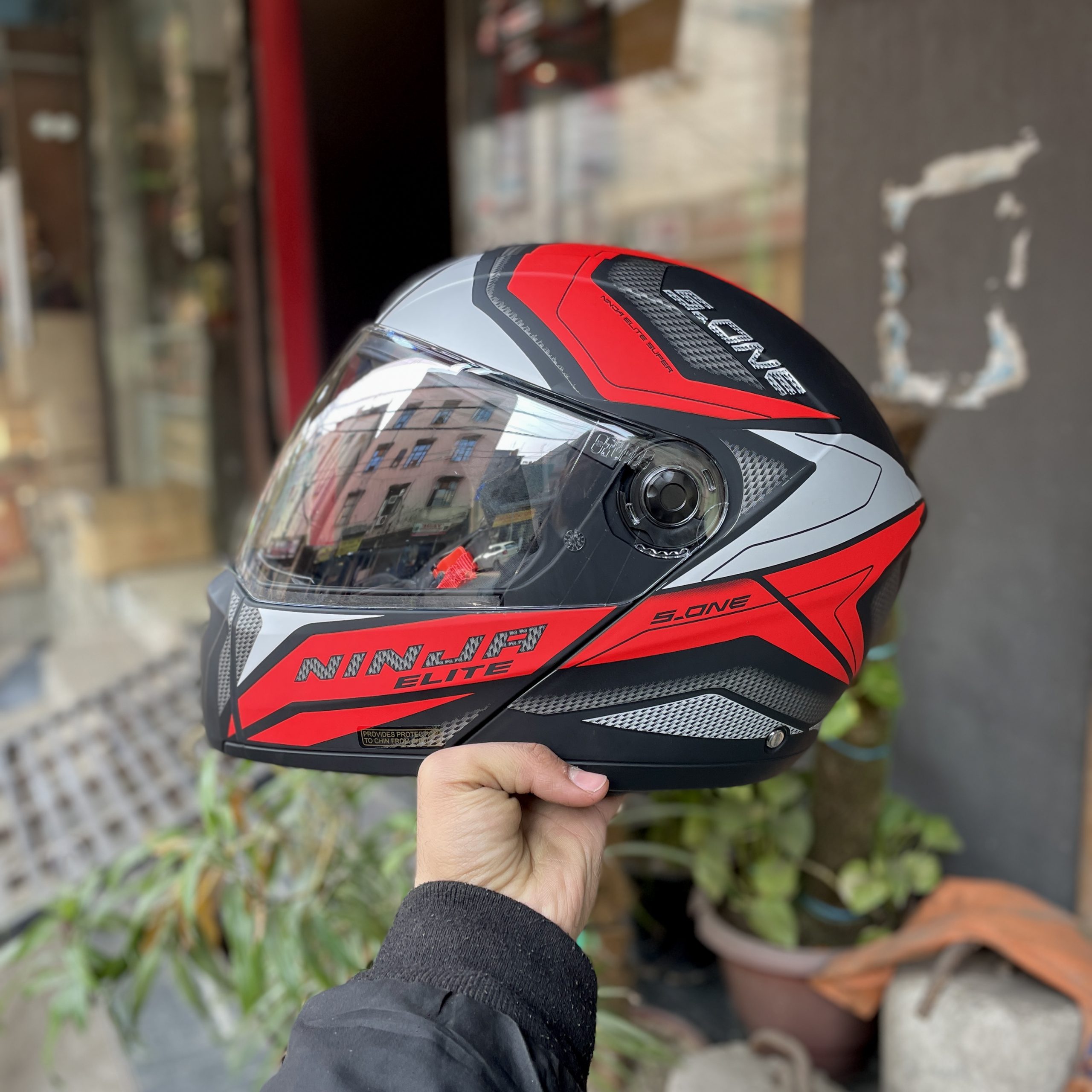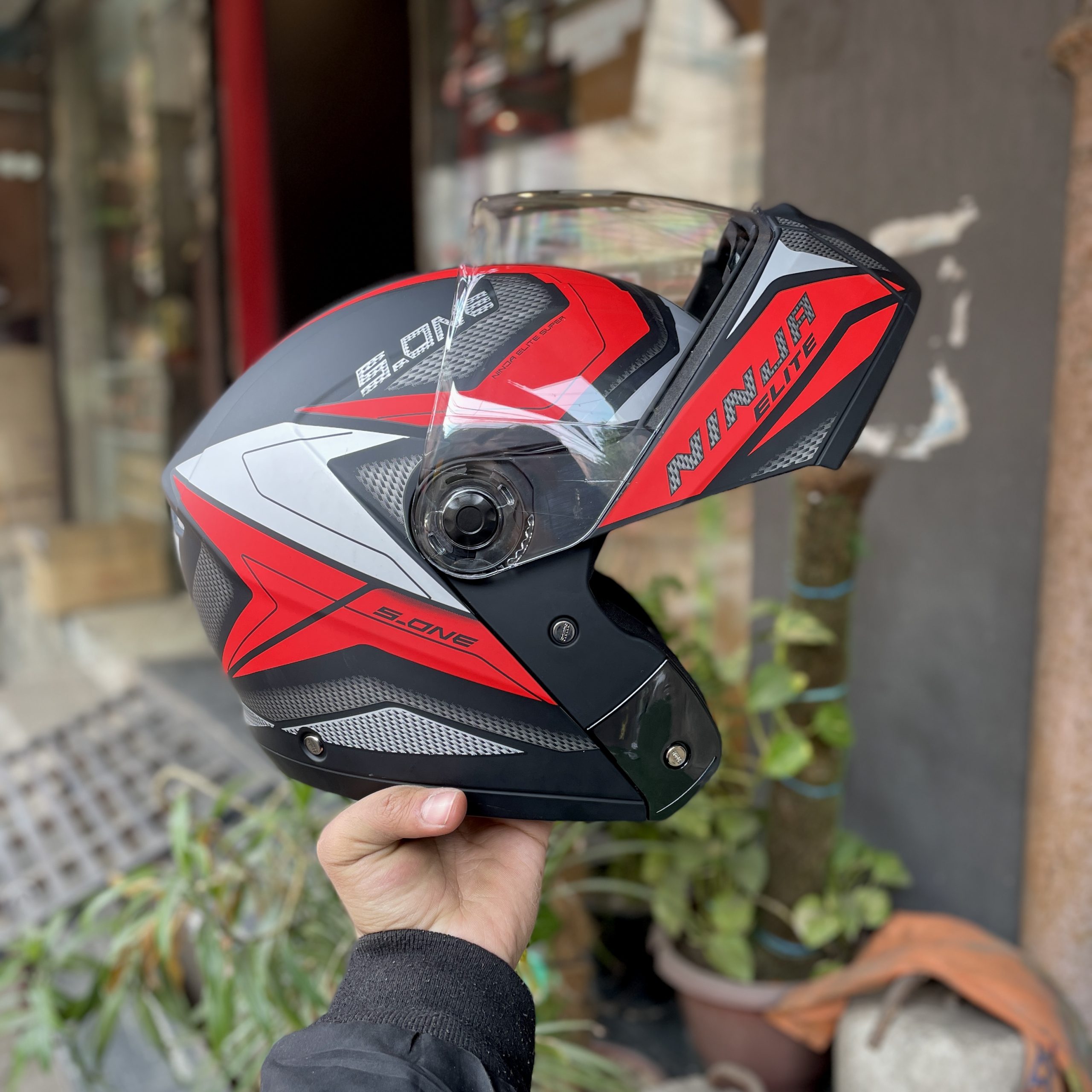 Studds Ninja Elite Super D4 Matt Black Red Flip Up Helmet