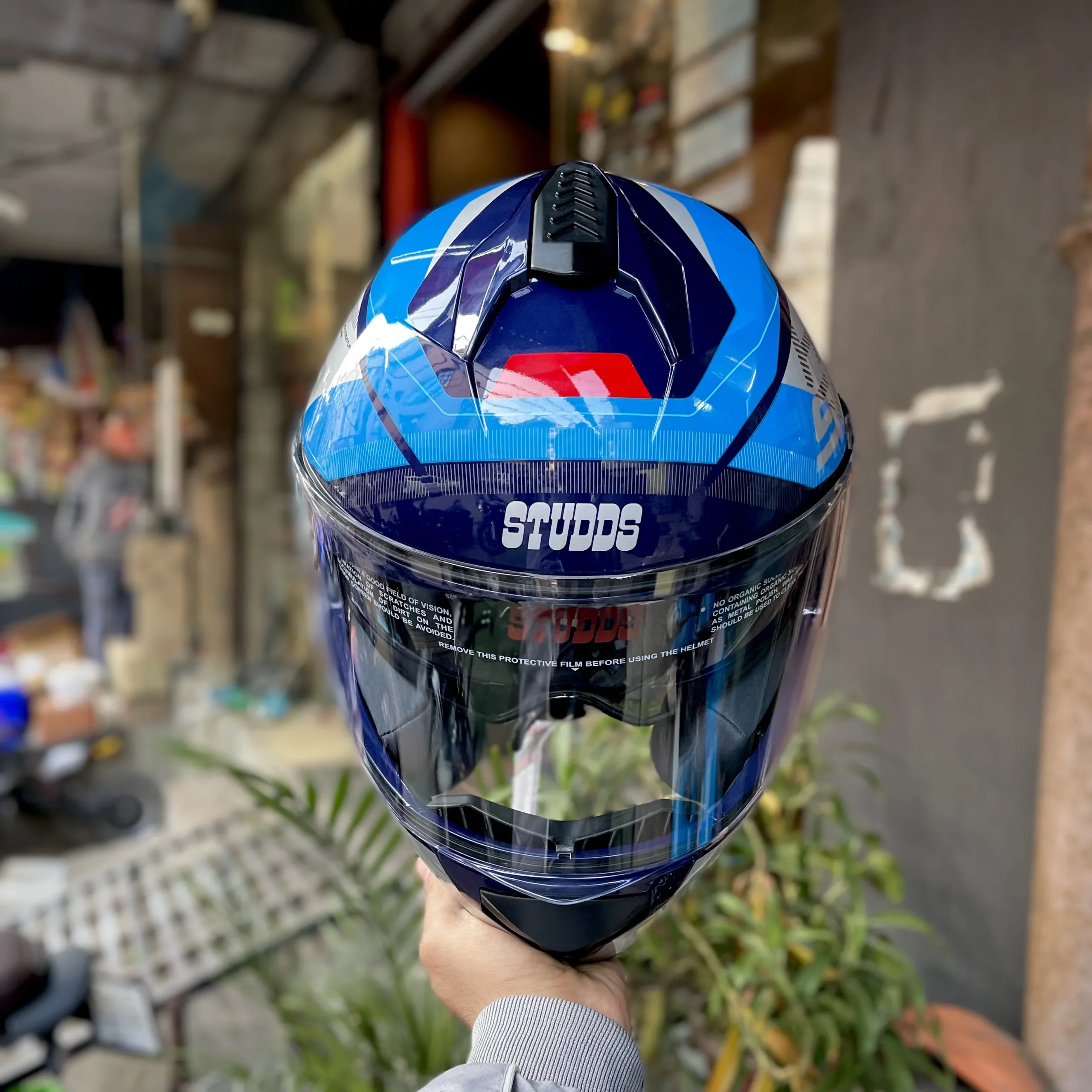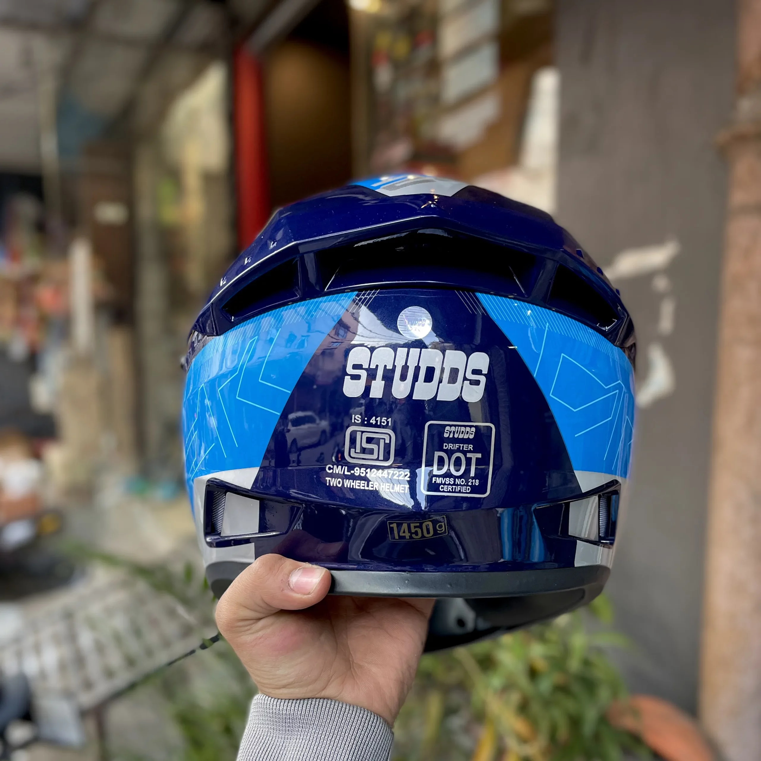 The STUDDS Drifter D6 Rebellion Full Face Helmet – Blue is built for riders who want a perfect combination of safety, comfort, and bold styling for everyday riding. Designed with a full-face structure, this helmet offers complete protection to the head, face, and chin, helping guard against wind, dust, insects, and road debris during city rides and highway travel. This helmet features a high-impact resistant outer shell that provides dependable protection while maintaining a balanced and comfortable weight. Its aerodynamic shape supports stable riding and helps reduce wind resistance, making it suitable for daily commuting as well as longer rides. The Rebellion blue graphics give the helmet a sporty and modern appearance that stands out on the road. The interior padding is crafted for enhanced comfort and snug fit, helping reduce fatigue during extended riding hours. The padding supports ventilation and comfort in varying weather conditions. A secure chin strap locking system ensures the helmet stays firmly in place, offering confidence and stability throughout the ride. Equipped with a clear visor, the helmet provides wide and clear visibility, protecting the eyes from wind and dust while allowing better road awareness. Easy to maintain and reliable for regular use, the STUDDS Drifter D6 Rebellion helmet is a practical and stylish choice for riders looking for everyday protection with premium looks. Key Benefits: Full face helmet for complete head and chin protection High-impact resistant outer shell Comfortable inner padding for daily and long rides Aerodynamic design to reduce wind resistance Clear visor for improved road visibility Secure chin strap locking system Sporty blue Rebellion graphics