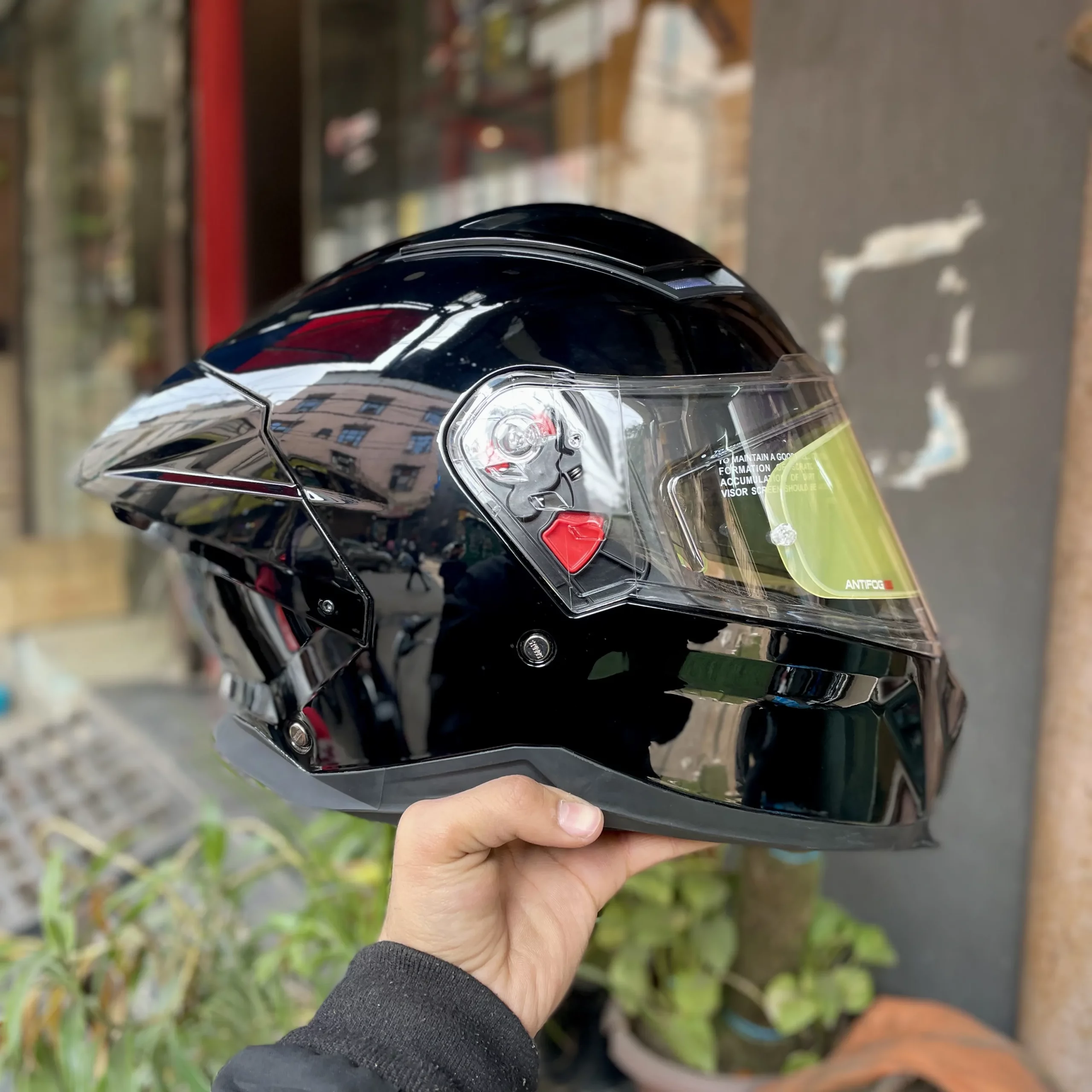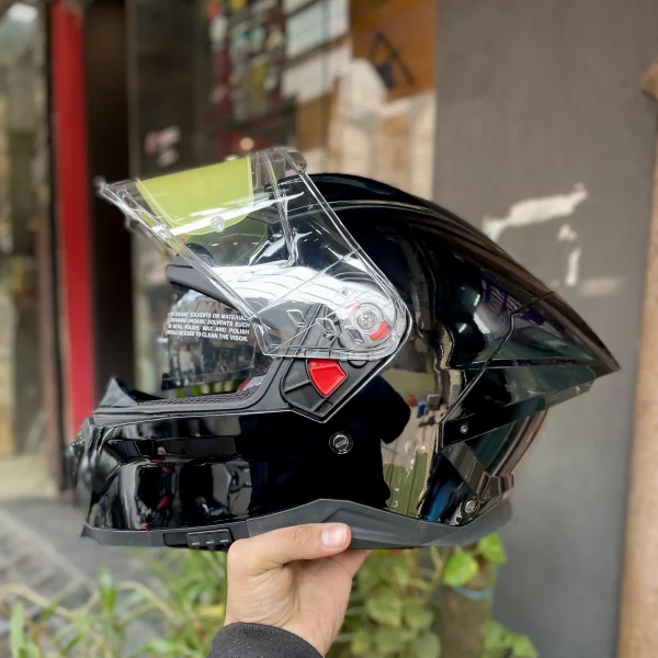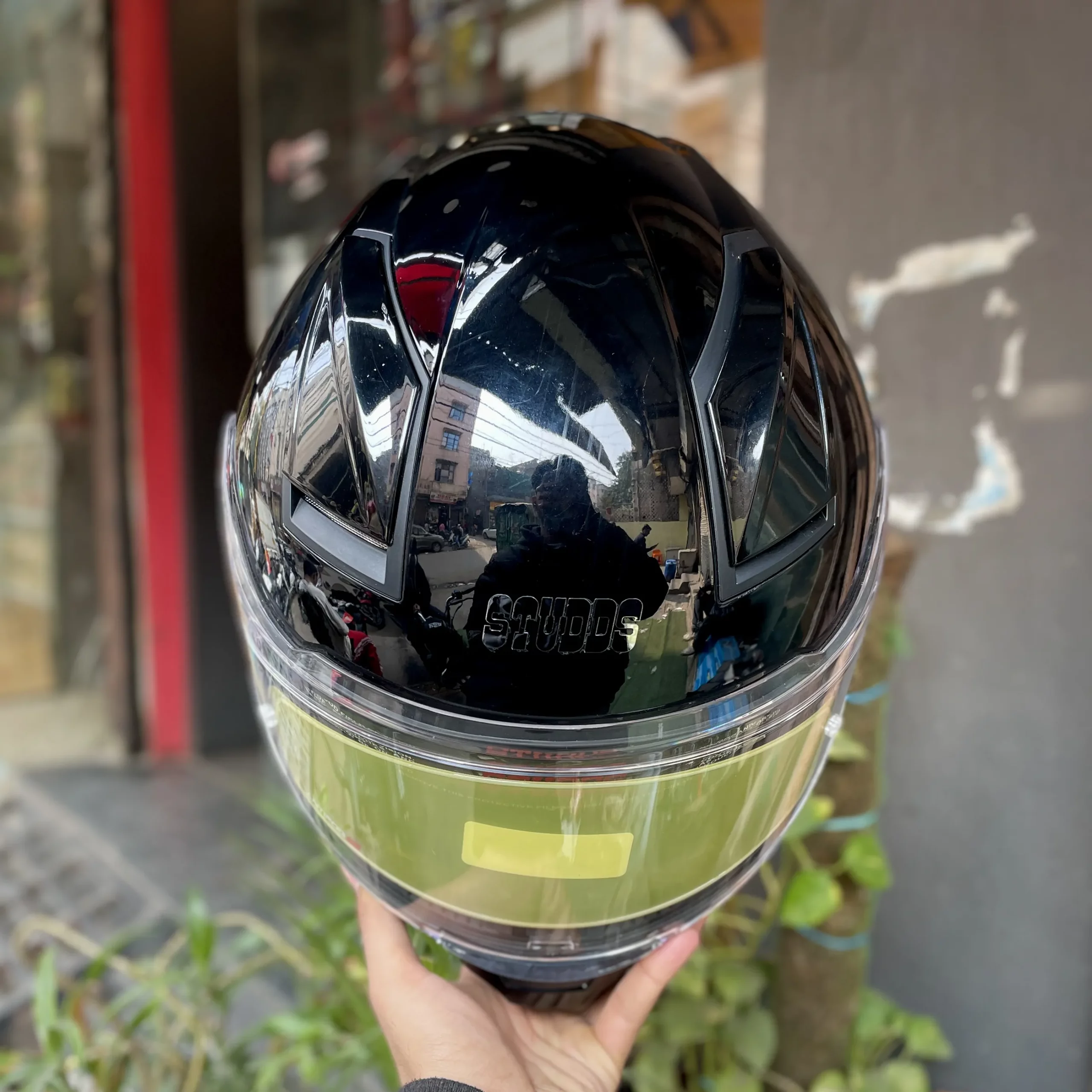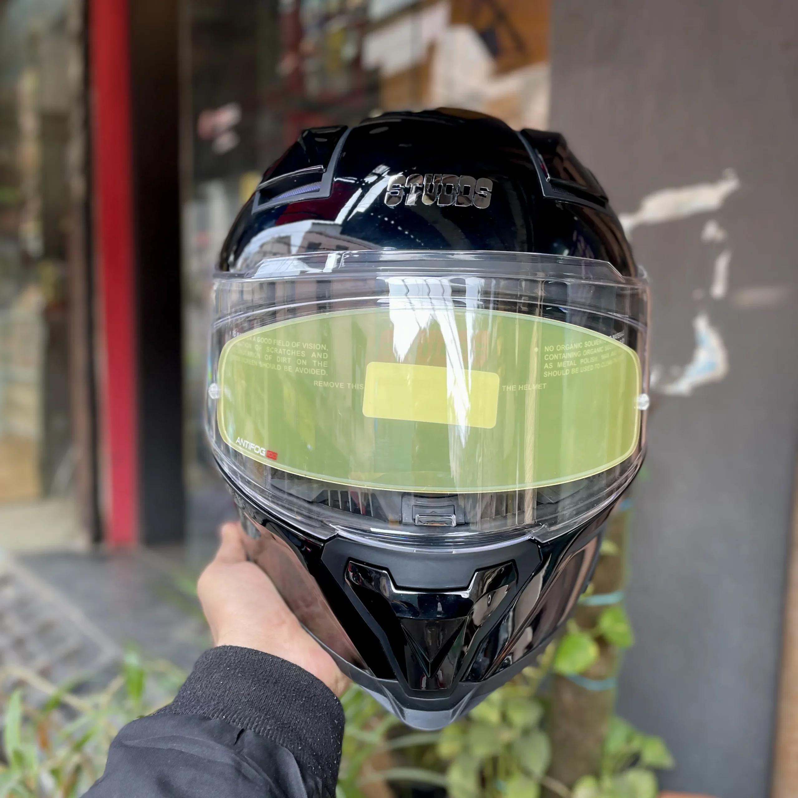 The Studds Helios Solid Gloss Black Full Face Helmet is designed for riders who want a perfect balance of safety, comfort, and clean styling. Built with a high-impact engineered thermoplastic shell, this helmet offers reliable protection for daily commuting as well as longer highway rides. The aerodynamic shell design helps reduce wind resistance and improves stability at higher speeds, making rides smoother and less tiring. Inside, the helmet features regulated density EPS liner that effectively absorbs impact energy, enhancing rider safety. The inner padding is comfortable, removable, and replaceable, allowing easy cleaning and long-term hygiene. Equipped with a scratch-resistant clear visor, the helmet provides a wide field of vision and protects the rider from dust, wind, insects, and road debris. The visor ensures clear visibility in different riding conditions, making it suitable for both day and night use. For secure and easy fastening, the helmet comes with a quick-release chin strap, allowing convenient wear and removal. Finished in a classic gloss black color, the Studds Helios Solid helmet offers a timeless look that pairs well with any motorcycle and riding gear. Designed to meet the needs of everyday riders, this full-face helmet delivers dependable performance, comfort, and understated style. Key Highlights: High-impact thermoplastic outer shell Full face helmet design for enhanced protection Regulated density EPS liner for shock absorption Scratch-resistant clear visor with wide visibility Comfortable, removable, and replaceable inner liners Aerodynamic design for reduced wind resistance Quick-release chin strap Classic gloss black finish