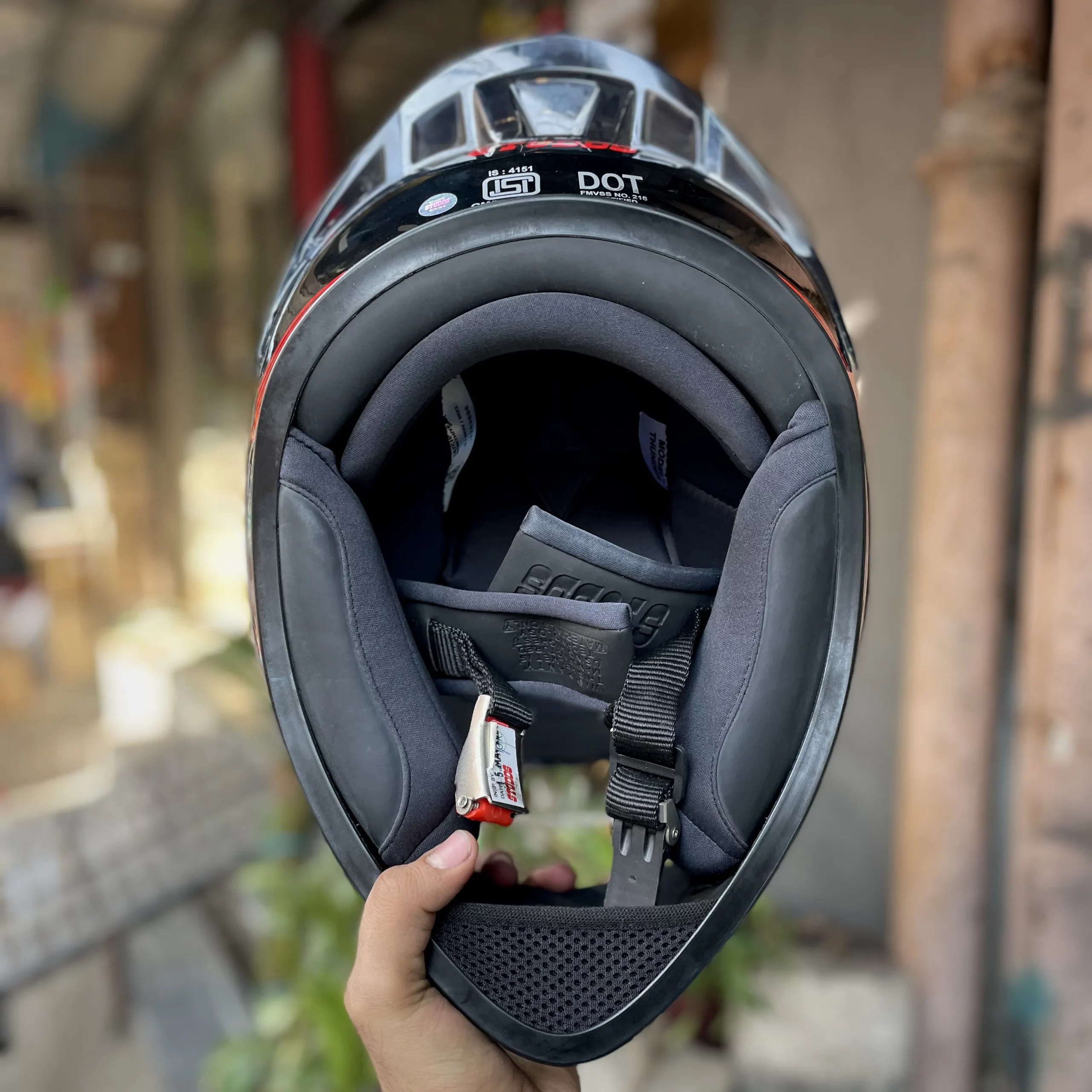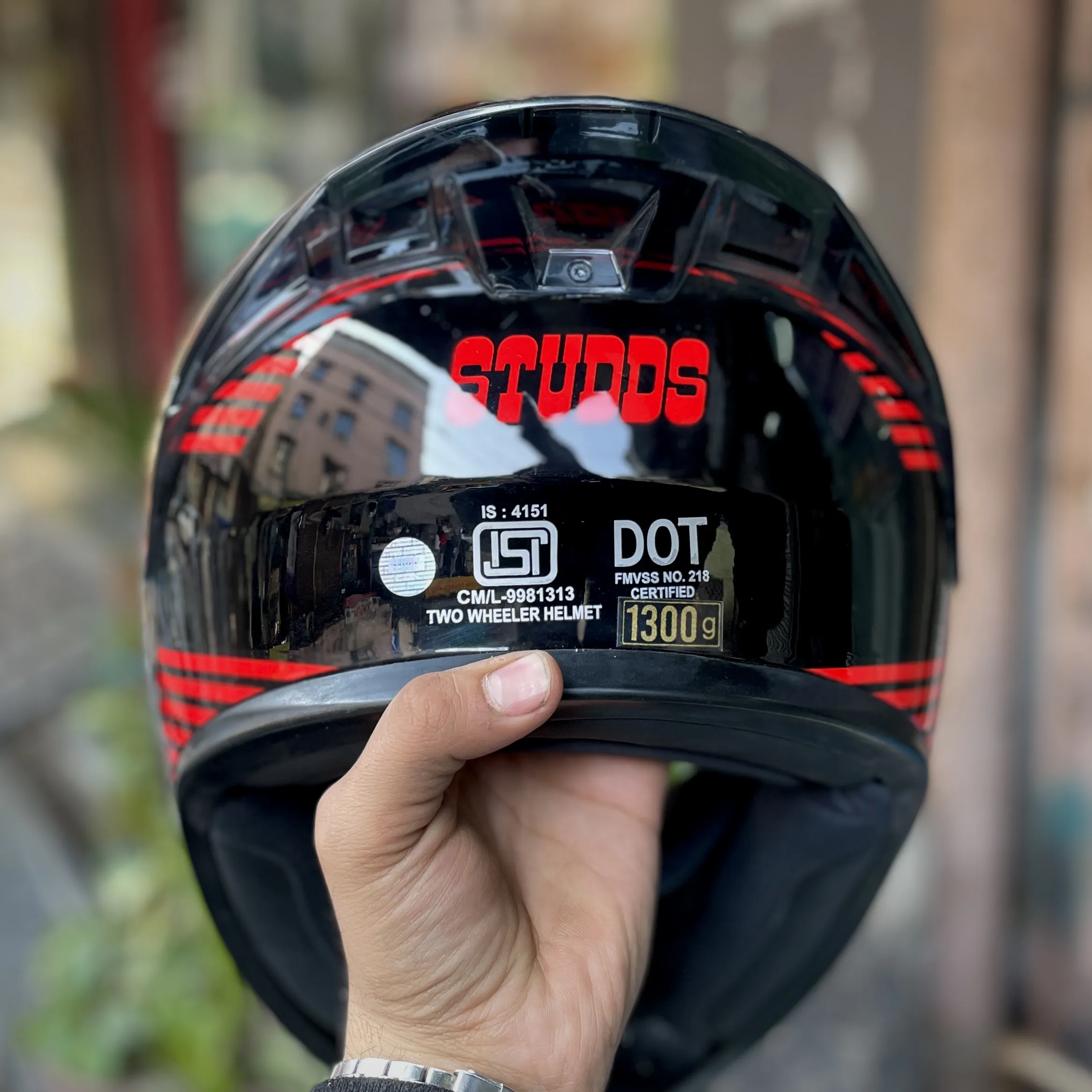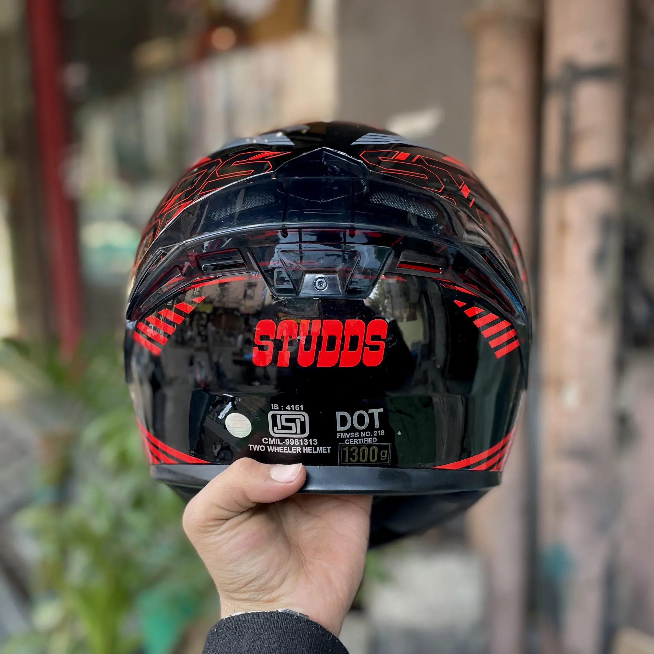 The STUDDS Thunder D11 Full Face Helmet with Spoiler – Black & Red is designed for riders who want enhanced protection, sporty styling, and everyday riding comfort. Featuring a full-face construction with an integrated rear spoiler, this helmet offers improved stability and aerodynamics, making it suitable for city riding as well as highway use. Manufactured with a high-impact resistant outer shell, the helmet helps protect the head and chin from everyday riding risks while maintaining a balanced and comfortable weight. The aerodynamic design with spoiler helps reduce wind resistance and adds a bold, aggressive look to the helmet’s overall profile. The interior is equipped with comfortable padding that provides a snug and secure fit for long riding hours. The liner supports comfort during daily commuting and regular rides. A secure chin strap locking system ensures the helmet stays firmly in place while riding, offering confidence and safety at all speeds. The clear visor delivers wide road visibility, protecting the rider’s eyes from wind, dust, insects, and debris. The black and red color combination enhances the helmet’s sporty appeal, making it a great choice for riders looking for style along with dependable performance. Ideal for daily commuters and regular riders, the STUDDS Thunder D11 helmet combines safety, comfort, and visual appeal in one practical package. Key Benefits: Full face helmet with rear spoiler Durable high-impact outer shell Aerodynamic design for improved stability Comfortable inner padding for daily use Clear visor for enhanced visibility Secure chin strap locking system Sporty black & red color finish