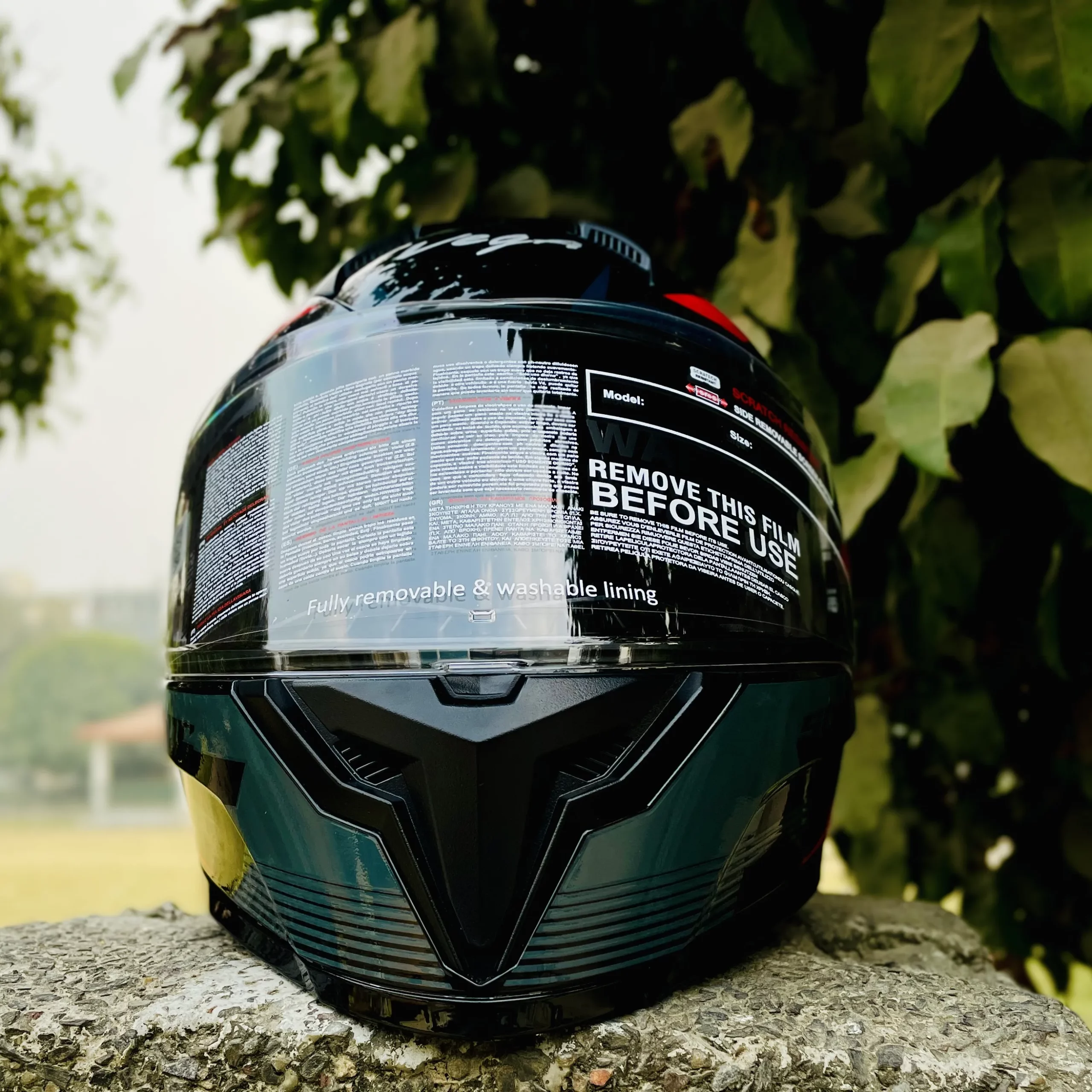 Its full face construction provides complete coverage for the head and chin area, while the aerodynamic rear spoiler helps improve stability and reduce wind drag at higher speeds. The inner padding is soft, breathable, and comfortable, ensuring a snug fit even during long rides.