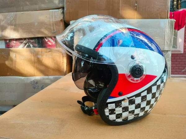 Ride in style and comfort with the NIKKO N-500 Open Face Helmet, designed for riders who prefer a retro look combined with modern comfort and functionality. This helmet features a classic open face design, offering a wide field of vision and better airflow, making it ideal for city rides and short-distance touring. Built with a high-quality ABS outer shell, the helmet provides reliable protection against impacts while maintaining a lightweight structure for comfortable use. The inner layer is equipped with an EPS impact-absorbing liner, which helps reduce impact energy and enhances overall safety. The helmet comes with a dual visor setup, including a clear outer visor and an inner sun shield. This allows riders to adapt easily to changing light conditions, ensuring better visibility during both day and night rides. The quick-release buckle system ensures secure fastening while making it easy to wear and remove. Inside, the helmet features soft and comfortable inner padding, designed to provide a snug fit and reduce fatigue during long rides. The breathable interior helps maintain airflow and comfort even in warm conditions. Its lightweight design (around 1200g) ensures reduced neck strain during extended use. The glossy multicolor graphic design adds a stylish and sporty look, making it suitable for riders who want both performance and aesthetics. Whether you are commuting daily or going for casual rides, this helmet offers a perfect balance of comfort, style, and protection. Key Benefits: Open face helmet design for wide visibility Durable ABS outer shell for protection Dual visor system (clear visor + sun visor) Lightweight construction (~1200g) Comfortable and breathable inner padding Quick-release buckle for easy use Stylish glossy multicolor finish Ideal for daily riding and city use