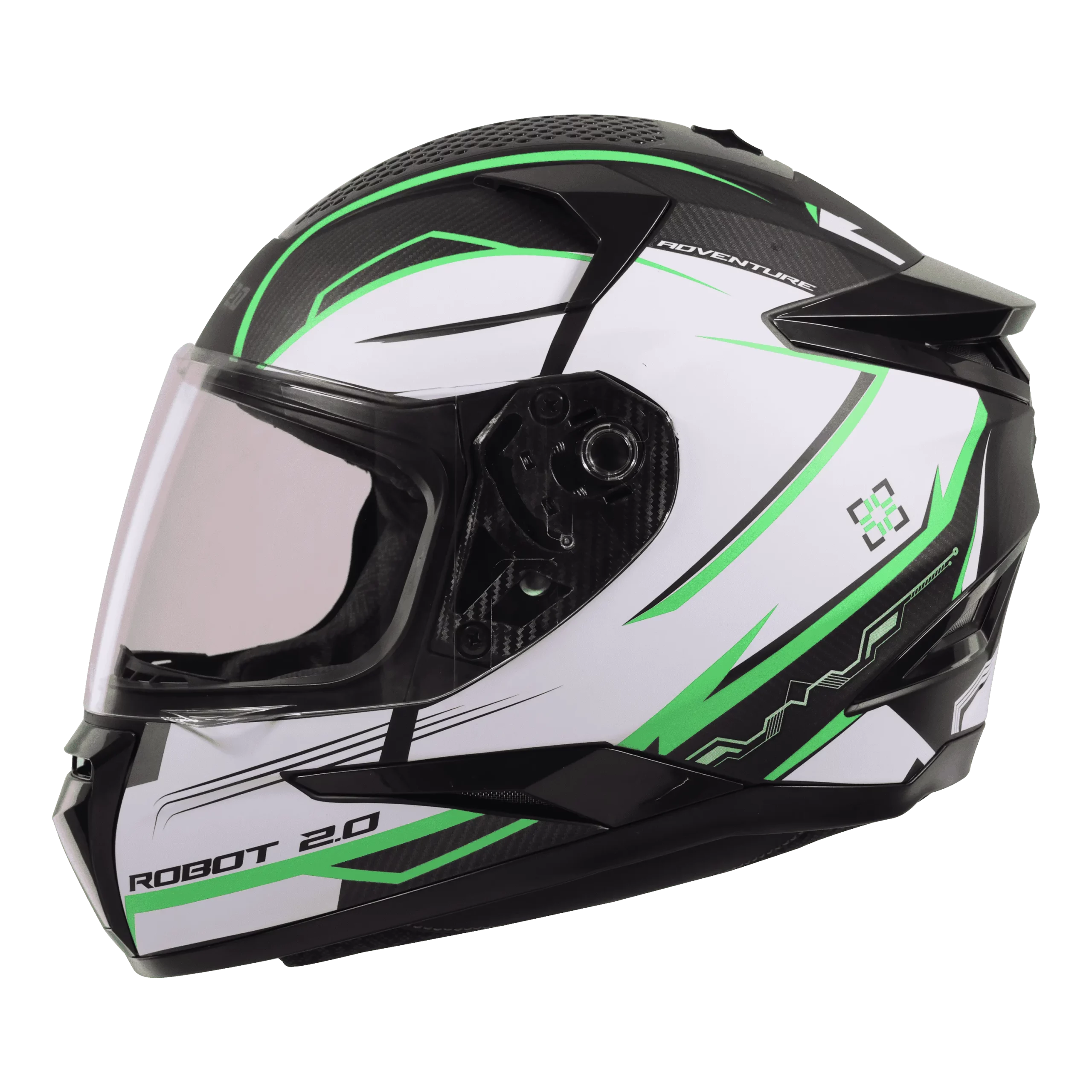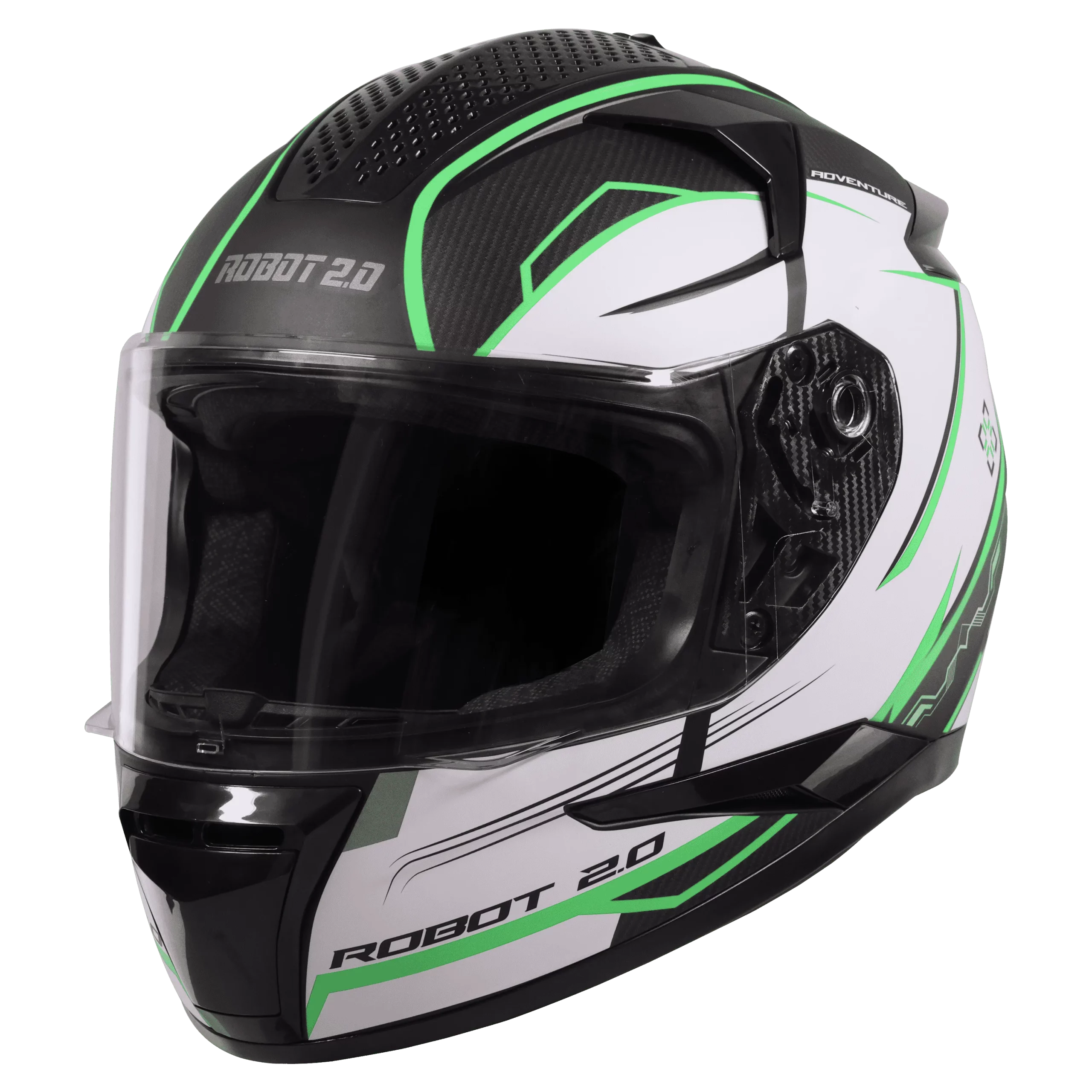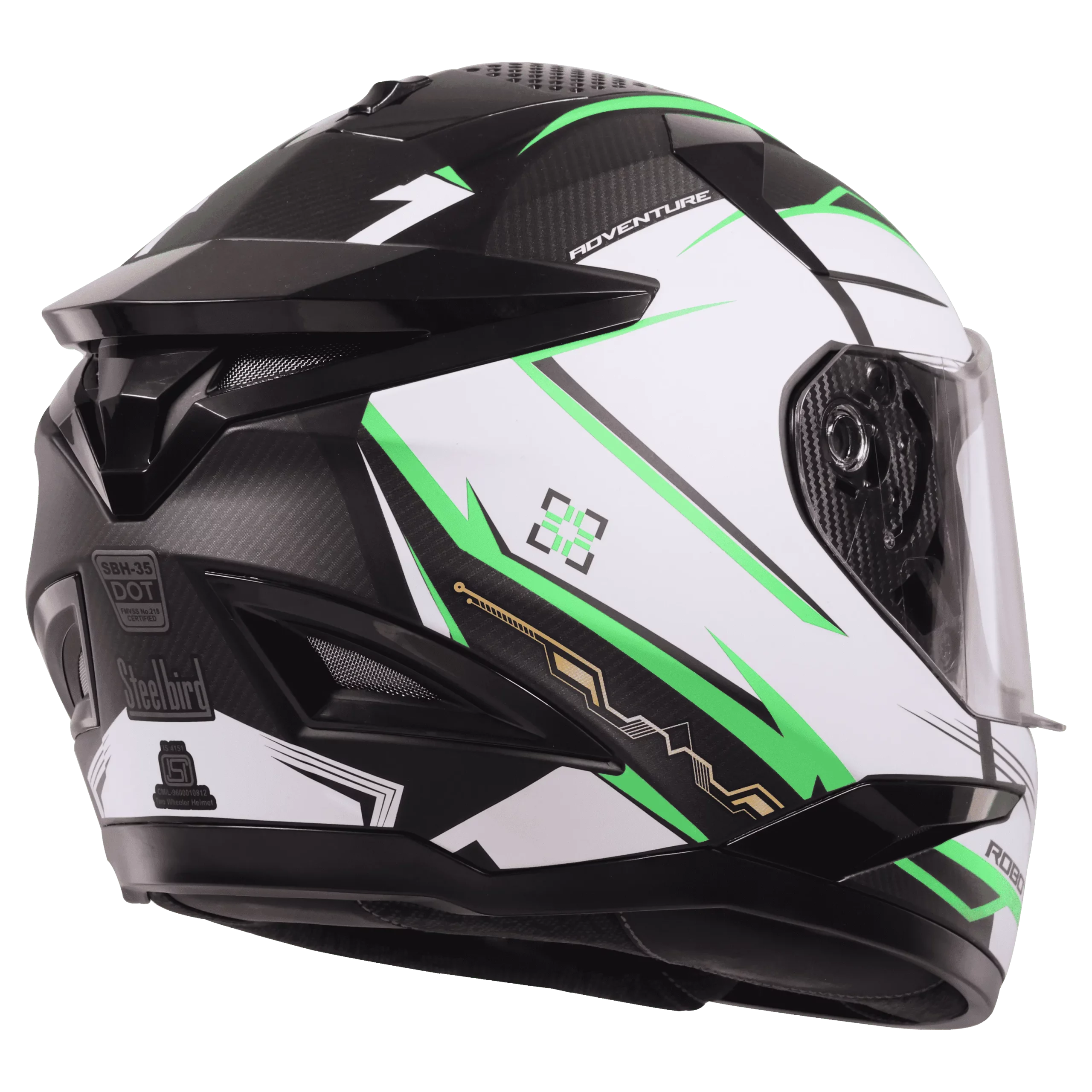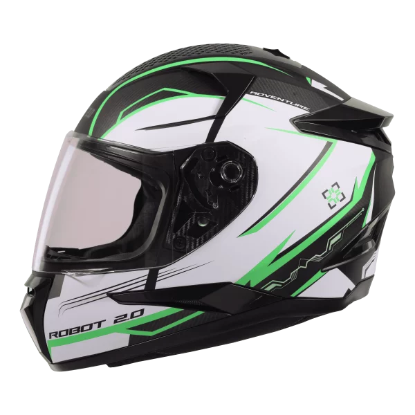 The SBH 35 DOT Robot 2.0 Adventure Matt Black Green Helmet with bold styling, comfort padding, and reliable protection.
