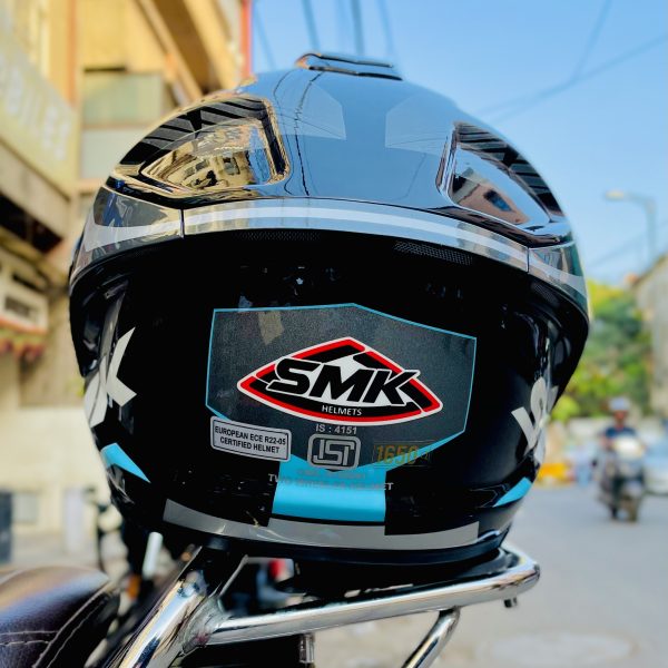 SMK Titan Slick Fiber Glass style decor GL265 Gloss Black Grey/Blue Dual Visor full face Helmet ECE 22.06 made of eps material limited edition (BLACK VISOR)