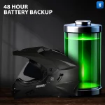 Ride smarter and safer with the Steelbird Bluetooth Certified Motocross Helmet with Sunshield, designed to combine modern technology, rider comfort, and dependable protection. This helmet is built for riders who want the convenience of wireless communication along with the rugged styling of a motocross-inspired helmet. The helmet features a high-impact resistant thermoplastic shell that provides strong protection while remaining lightweight for long rides. This durable construction helps absorb impact forces and enhances rider safety during everyday commuting or adventure riding. One of the key highlights of this helmet is the integrated Bluetooth connectivity, which allows riders to connect their smartphone for hands-free calling, music streaming, and navigation prompts. This feature enables riders to stay connected while keeping their focus on the road. Some Bluetooth helmets also provide extended battery backup for long usage, making them suitable for touring riders. The helmet includes a built-in inner sunshield that helps reduce glare from bright sunlight, improving visibility during daytime riding. Riders can quickly activate the sun visor when needed, making it convenient for changing light conditions. Inside, the helmet is equipped with breathable padding and a comfortable interior lining designed to provide a snug and secure fit. The interior materials help maintain airflow and comfort, even during long rides. Ventilation channels allow fresh air to circulate inside the helmet, reducing heat build-up and improving overall comfort. Combined with its motocross styling and modern features, this helmet provides a complete riding solution for daily commuting, touring, and adventure rides. Key Benefits: Integrated Bluetooth connectivity for calls and music High-impact resistant thermoplastic shell Built-in inner sunshield for glare protection Comfortable breathable interior padding Ventilation system for improved airflow Motocross-inspired sporty design Suitable for commuting, touring, and adventure rides