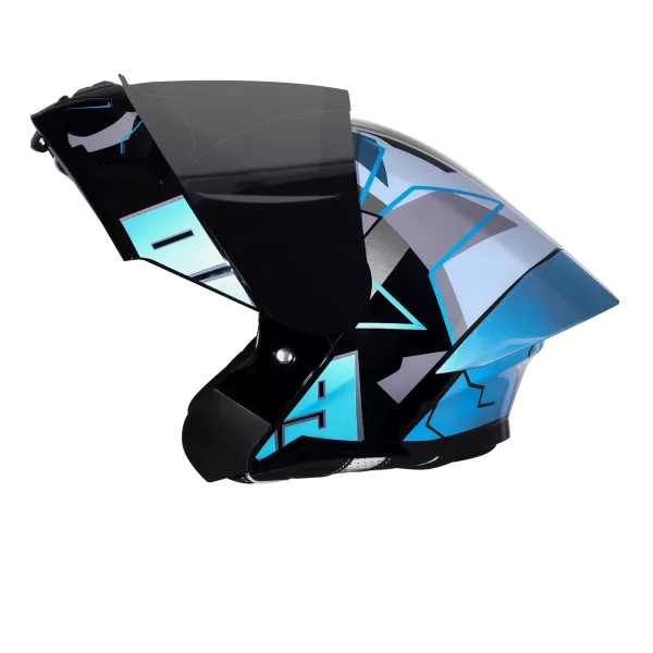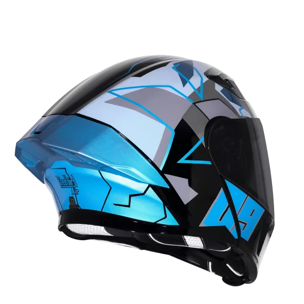The Steelbird SBA-20 09 Glossy Black with Metallic Blue Helmet is designed for riders who want the flexibility of a flip-up helmet combined with reliable protection and modern styling. This modular motorcycle helmet offers a convenient design that allows riders to easily lift the front chin guard when needed, making it suitable for both city commuting and long-distance rides. The helmet is built using a high-impact resistant thermoplastic shell, providing durability and improved protection during everyday riding conditions. Its sturdy outer shell is designed to absorb impact energy while maintaining a lightweight structure that keeps riders comfortable during long journeys. The flip-up mechanism allows riders to quickly raise the chin guard with a single-button system, making it easier to communicate or take short breaks without removing the helmet. This practical design makes the helmet popular among touring riders and daily commuters who value convenience along with safety. Inside the helmet, breathable interiors with a neck protector provide added comfort and support during long rides. The hygienic interior padding is designed with multi-pore ventilation that helps improve airflow and reduce heat buildup in warm weather conditions. The inner liners are removable and washable, helping maintain hygiene and long-term usability. The helmet also features a quick-release visor mechanism that allows riders to easily remove or replace the visor when needed. The clear visor offers wide road visibility and protects the rider’s eyes from wind, dust, insects, and debris while riding. Finished in a glossy black base with metallic blue graphic accents, the helmet delivers a sporty and modern appearance that complements a wide range of motorcycles. Key Features Flip-up modular motorcycle helmet High-impact resistant thermoplastic shell Breathable padding with neck protector Multi-pore ventilation for better airflow Removable and washable interior liners Quick-release visor change mechanism One-button flip-up chin guard system Glossy black finish with metallic blue graphics