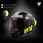 Steelbird SBA 20 09 Glossy Black Neon Flip-Up Helmet – ISI Certified Modular Helmet with Thermoplastic Shell & Quick-Release Visor