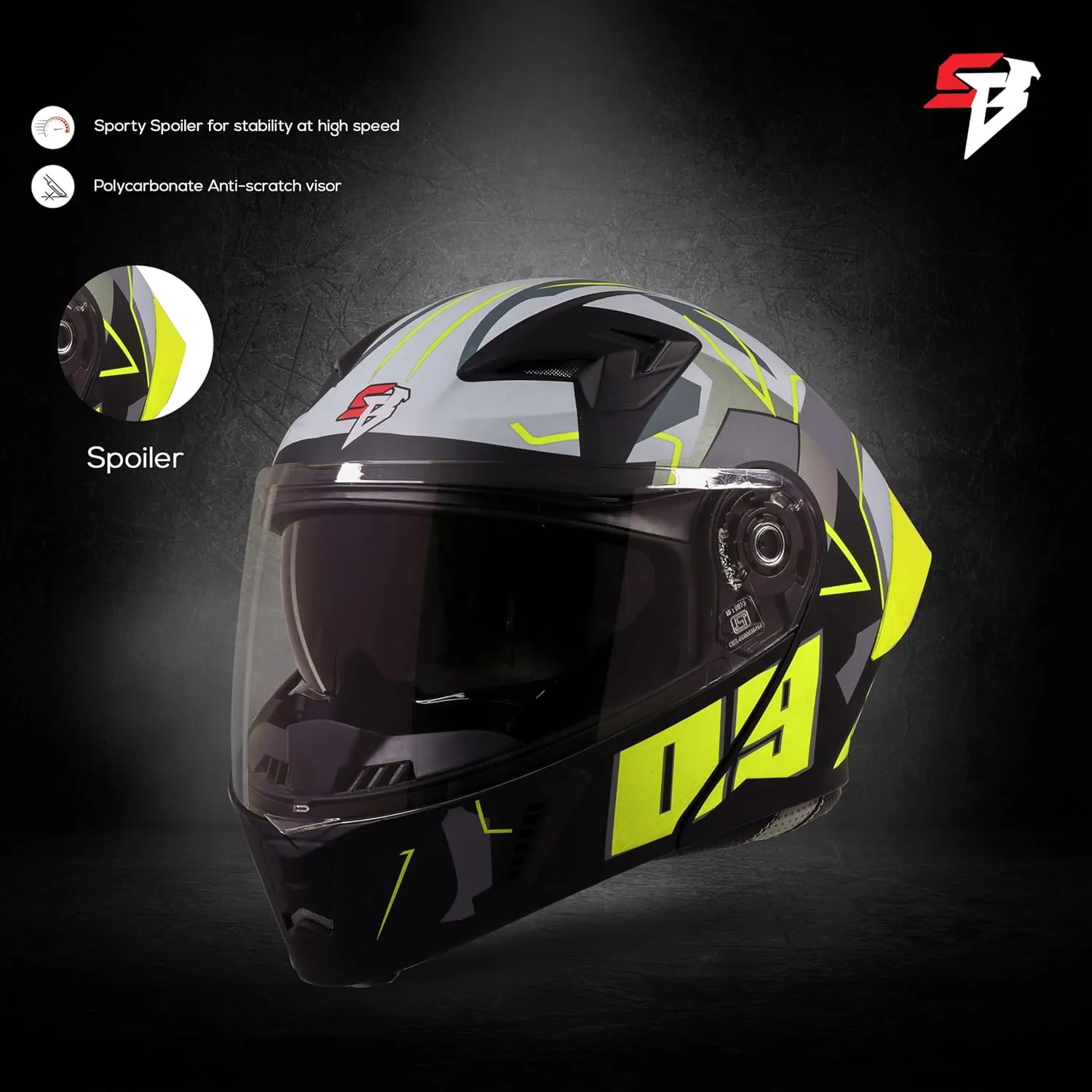 Ride with enhanced safety and convenience using the Steelbird SBA 20 Certified Flip-Up Graphic Helmet, designed to provide reliable protection along with practical features for everyday riders. This modular helmet combines durability, comfort, and modern styling, making it suitable for city commuting, highway travel, and long-distance touring. The helmet features a high-impact resistant thermoplastic shell that provides strong protection while remaining lightweight. This construction helps absorb impact energy and reduces neck fatigue during long rides. The helmet is also ISI certified, ensuring it meets safety standards for motorcycle riders. One of the standout features of this helmet is its flip-up chin guard mechanism, which allows the front section of the helmet to open easily with a single button. This design provides additional convenience when talking, drinking water, or taking short breaks without removing the helmet completely. Inside, the helmet includes breathable interior padding with neck protection, designed to provide comfort during long rides. The interior lining helps improve ventilation and can usually be removed and washed to maintain hygiene over time. The helmet is equipped with a quick-release micro-metric buckle locking system, allowing riders to fasten or remove the helmet quickly while maintaining a secure fit. A scratch-resistant visor with quick-release mechanism ensures clear visibility and makes visor replacement easy when needed. The aerodynamic shape of the Steelbird SBA-20 series helps reduce wind resistance and improve stability at higher speeds, while the sporty graphics and spoiler design enhance the helmet’s overall appearance. With its modular flip-up design, durable shell construction, and comfortable interiors, the Steelbird SBA 20 Flip-Up Helmet is a practical and stylish choice for riders who want convenience and safety in one helmet. Key Benefits: High-impact resistant thermoplastic shell ISI certified helmet for safety Flip-up chin guard mechanism for convenience Breathable and comfortable interior padding Micro-metric quick-release buckle locking system Scratch-resistant visor with quick-release mechanism Aerodynamic design for better riding stability