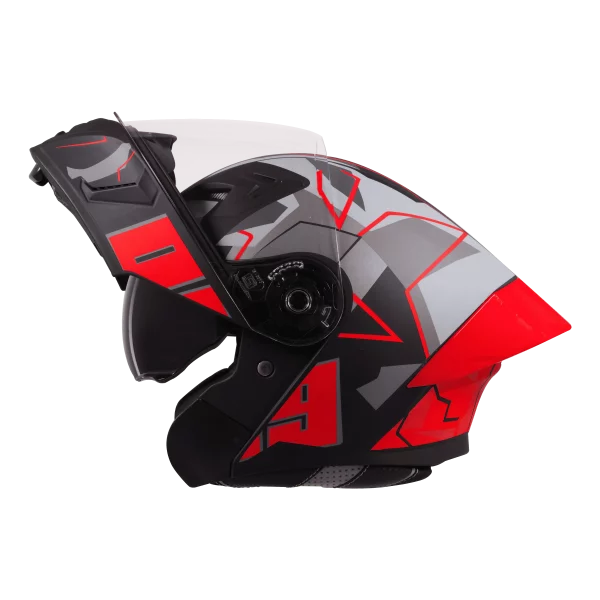 Ride with confidence and modern styling using the Steelbird SBA 20 ISS 09 Matt Black Red Helmet, designed to deliver dependable protection, comfort, and a bold sporty appearance. This helmet is suitable for everyday commuting, highway rides, and long-distance touring, offering riders a combination of safety, durability, and convenience. The helmet features a high-impact resistant thermoplastic outer shell, engineered to absorb impact energy and provide reliable protection while maintaining a lightweight structure. This durable construction enhances rider safety and reduces neck fatigue during long rides. This model is ISI certified, ensuring that it meets Indian safety standards for motorcycle helmets. The certification confirms that the helmet is built to comply with safety regulations required for road use. Inside, the helmet includes breathable padding with neck protection, providing extra comfort during extended rides. The hygienic interior is designed with multi-pore ventilation that helps improve airflow and reduce heat buildup in warm weather conditions. A major highlight of this helmet is its modular flip-up mechanism, which allows riders to lift the chin guard easily using a single button. This feature makes it convenient to talk, drink water, or take short breaks without removing the helmet completely. The helmet also features a quick-release micro-metric buckle locking system, allowing riders to fasten or remove the helmet quickly while ensuring a secure fit. Additionally, the quick-release visor change mechanism enables easy visor replacement when needed. All interior padding is detachable and washable, allowing riders to maintain hygiene and long-term comfort. The interiors are also designed to support installation of Bluetooth or hands-free kits for riders who prefer communication systems. With its matte black finish and red graphics, the Steelbird SBA 20 ISS 09 helmet offers a stylish and aggressive appearance while delivering the safety and comfort required for daily riding. Key Benefits: High-impact resistant thermoplastic shell ISI certified for rider safety Modular flip-up chin guard mechanism Breathable interior padding with neck protection Quick-release visor replacement mechanism Micro-metric buckle locking system Detachable and washable interiors Compatible with Bluetooth or hands-free kits