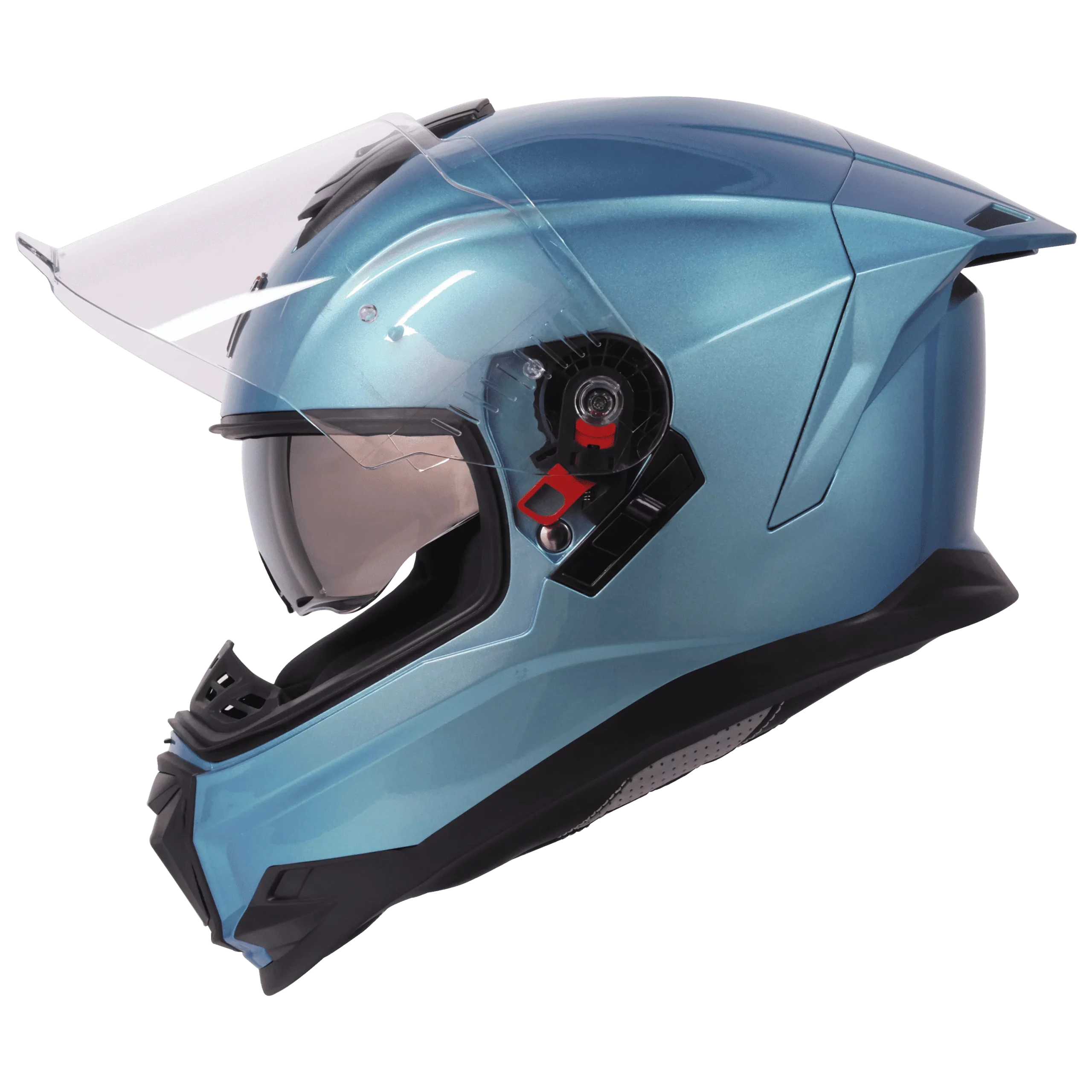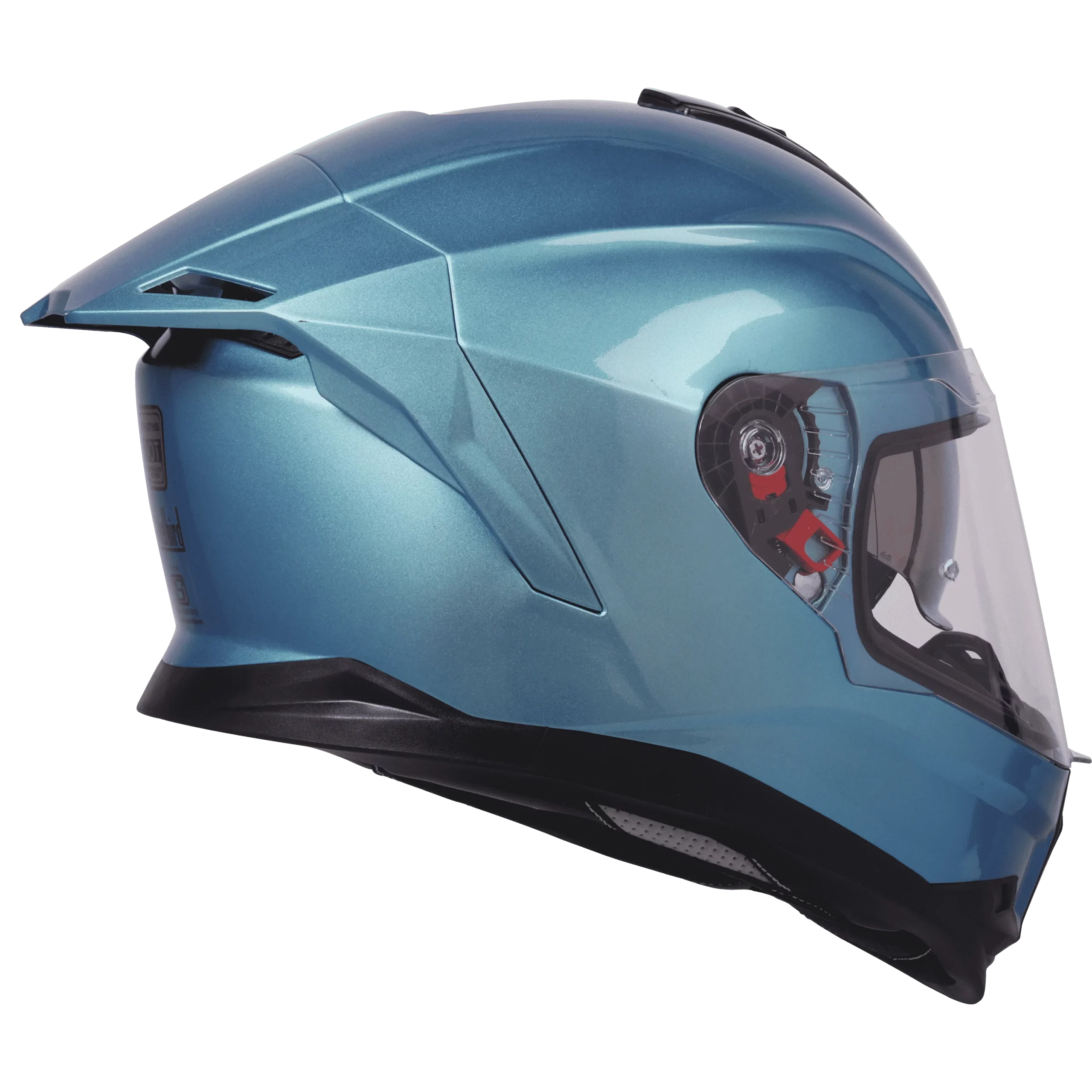 Ride with confidence and sporty styling using the Steelbird SBH 57 ISS Fighter Sapphire Helmet, designed to provide dependable protection, comfort, and modern aesthetics for motorcycle riders. This full-face helmet is built for daily commuting, touring, and highway riding, offering a balance of safety, durability, and comfort. The helmet features a high-impact resistant thermoplastic outer shell that helps absorb impact energy while remaining lightweight. This construction improves rider safety and reduces fatigue during long rides. The helmet is also dual certified with ISI and DOT standards, ensuring it meets safety requirements for motorcycle helmets. Its aerodynamic design helps improve stability at higher speeds while reducing wind resistance. The Sapphire graphics give the helmet a stylish and aggressive look that complements modern motorcycles and riding gear. Inside, the helmet includes high-density EPS padding and a comfortable interior lining designed to provide a snug and secure fit. The interior padding is removable and washable, helping maintain hygiene and comfort during long-term use. The helmet is equipped with a dynamic airflow ventilation system that allows fresh air to circulate inside, reducing heat buildup and improving comfort. It also includes a polycarbonate anti-scratch visor with a quick-release mechanism, allowing riders to easily remove or replace the visor when needed. A micrometric buckle locking system ensures quick and secure fastening while riding. With its combination of safety certification, ventilation, and comfortable interiors, the Steelbird SBH 57 ISS Fighter Sapphire Helmet is a reliable option for riders who want protection along with modern design. Key Benefits: High-impact resistant thermoplastic shell Dual certification: ISI and DOT Dynamic airflow ventilation system High-density EPS protective padding Anti-scratch polycarbonate visor Quick-release visor mechanism Micrometric buckle locking system Stylish Sapphire graphics design