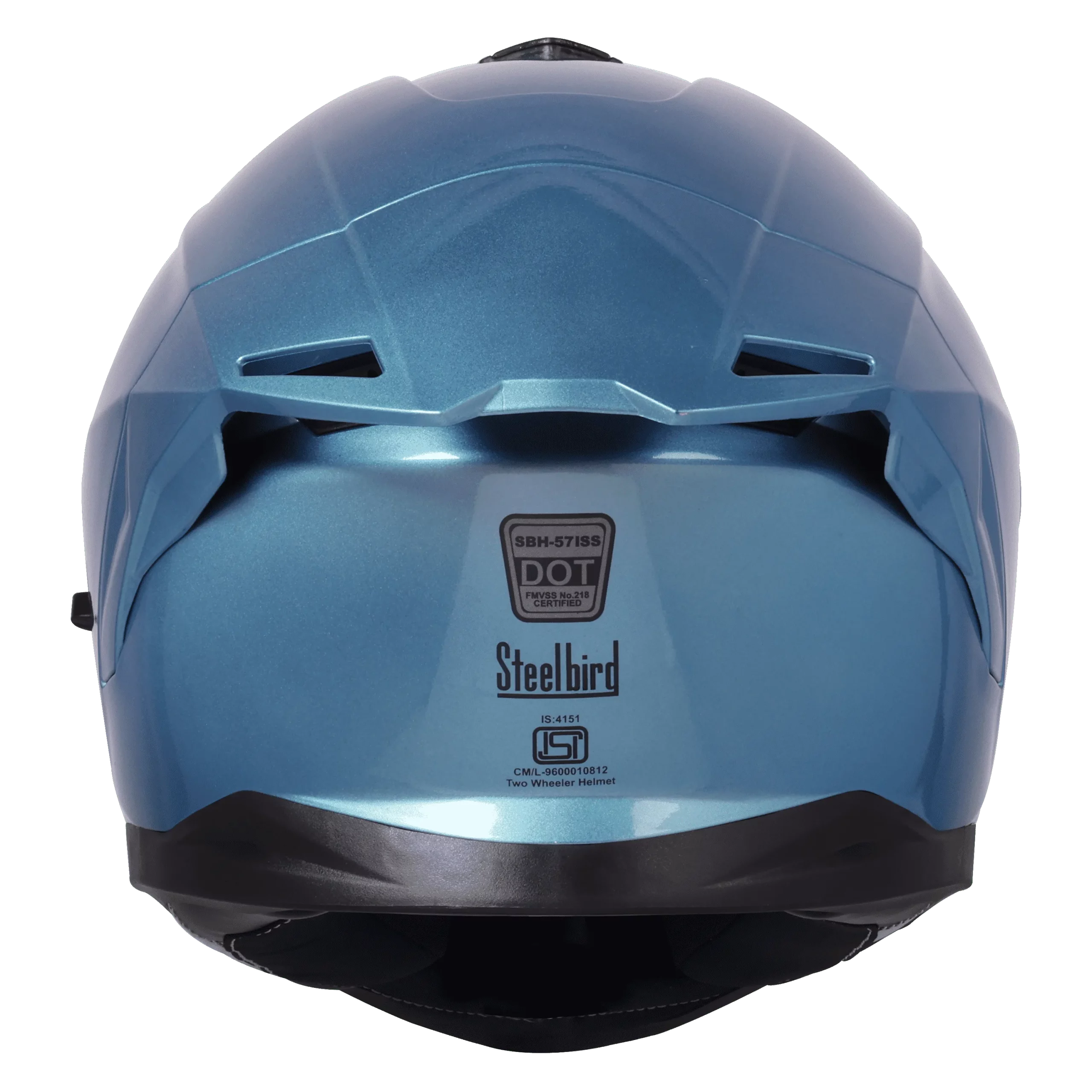 Steelbird SBH 57 ISS Fighter Sapphire Helmet with durable thermoplastic shell, dual safety certification, and comfortable ventilation system.