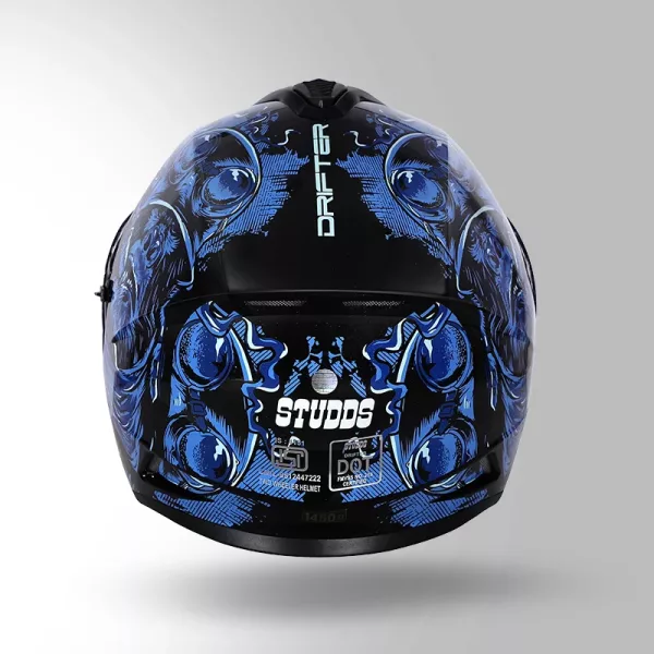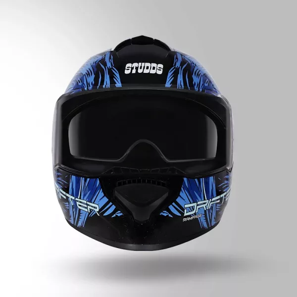 Studds Drifter D3 Rampage Decor Black Blue Helmet – Full Face Helmet with Dual Visor, EPS Protection & Advanced Ventilation System