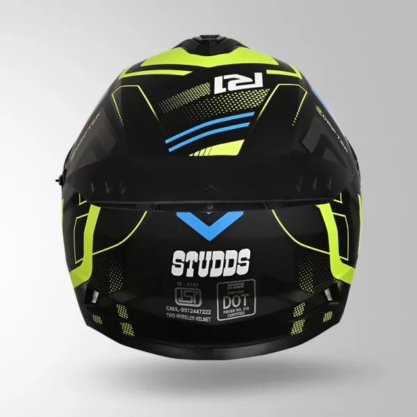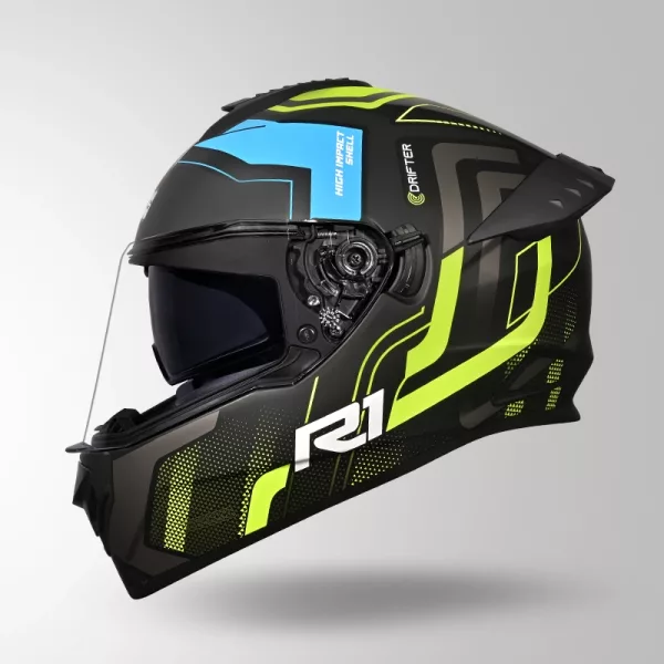 The Studds Drifter D4 R1 Decor Matt Black Yellow Grey Helmet is a premium full-face helmet designed for riders who want a perfect balance of safety, comfort, and modern styling. Built with a high-impact resistant ABS outer shell, this helmet provides strong protection against impacts while maintaining durability for daily and long-distance riding. This helmet comes with ISI and DOT certification, ensuring it meets recognized safety standards for reliable performance on Indian roads. The aerodynamic design helps reduce drag and keeps the helmet stable at higher speeds, making it suitable for both city commutes and highway rides. The helmet features a scratch-resistant quick-release visor along with an inner sun visor, providing clear visibility in different lighting conditions. Whether riding during bright sunlight or at night, the visor system helps maintain a comfortable and clear field of vision. For rider comfort, the helmet is equipped with a dynamic ventilation system that allows proper airflow, helping to keep the head cool during long rides. The high-density EPS liner enhances impact absorption, while the hypoallergenic, removable, and washable inner lining ensures hygiene and long-term comfort. The helmet also includes a quick-release chin strap with metal buckle, offering secure fastening and ease of use. Additional features like a free spoiler and stylish matte finish enhance both performance and overall aesthetics. Designed for riders who prioritize safety without compromising on looks, this helmet is a reliable and stylish upgrade for everyday use. Key Benefits: High-impact ABS outer shell for strong protection ISI & DOT certified for safety standards Dual visor system (clear visor + inner sun visor) Dynamic ventilation system for airflow and cooling High-density EPS liner for impact absorption Removable & washable hypoallergenic interiors Quick-release chin strap with metal buckle Aerodynamic design with stylish matte finish