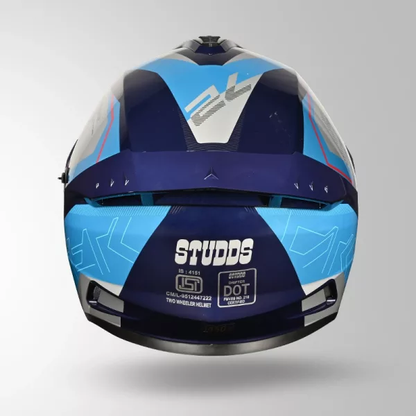 Studds Drifter D6 Rebellion Decor Blue Full Face Helmet – ISI Certified Bike Helmet with Aerodynamic Design, Ventilation System & Clear Visor