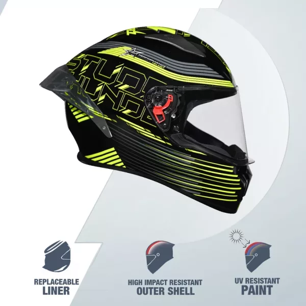STUDDS Thunder D11 Full Face Helmet – ISI Certified Graphic Motorcycle Helmet with Clear Visor, ABS Shell & Comfortable Inner Liner