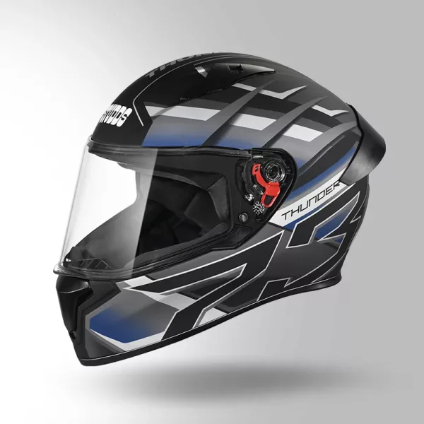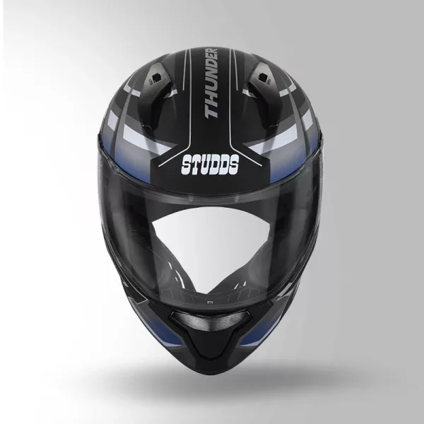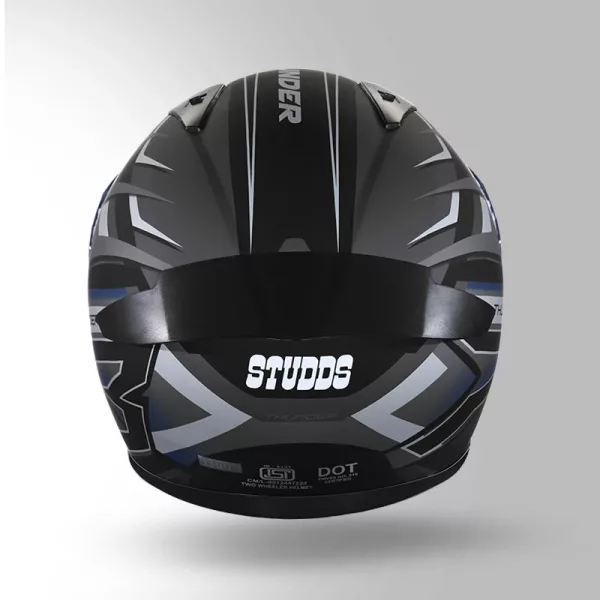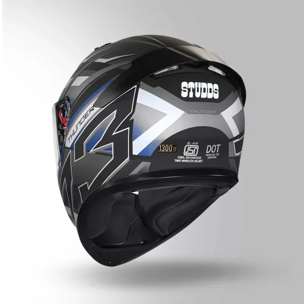 Studds Thunder D6 Decor Helmet – Matt Black Grey White Full Face Helmet with Aerodynamic Design & Clear Visor