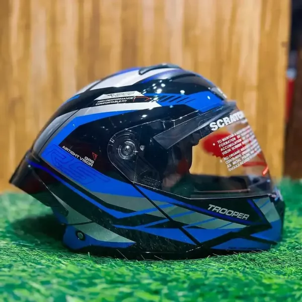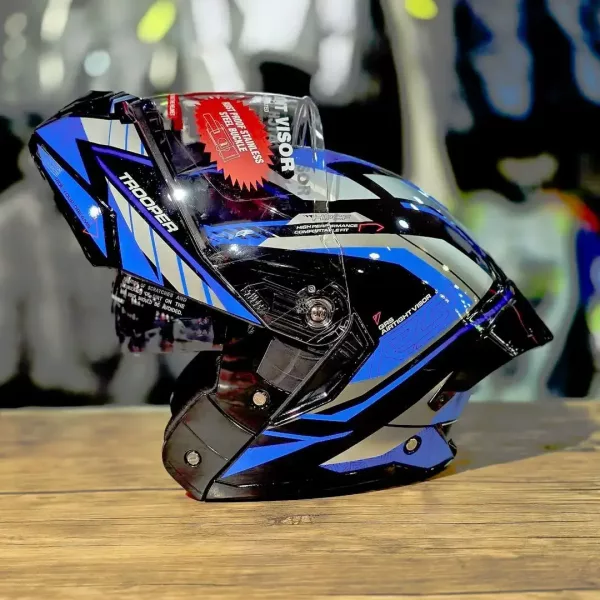 Upgrade your riding safety and comfort with the Studds Trooper Flip-Up Modular Helmet, a versatile and feature-packed helmet designed for both city commuting and long-distance touring. Built with a flip-up (modular) design, this helmet allows riders to easily lift the chin guard without removing the helmet, offering convenience during traffic stops, fuel breaks, and short interactions. The helmet is constructed using a high-impact engineered thermoplastic outer shell, providing reliable protection against impacts while maintaining a lightweight and comfortable structure. It is certified with ISI and DOT safety standards, ensuring dependable performance for everyday riding. Equipped with a dual visor system, the helmet includes a clear outer visor for daytime and night riding, along with an inner tinted sun visor for protection against harsh sunlight. The visor features a quick-release mechanism, making it easy to remove and replace when needed. Designed for long rides, the helmet comes with a hypoallergenic, replaceable inner liner, which enhances comfort and helps maintain hygiene over time. The liner can be removed and cleaned easily, making it ideal for daily riders. The quick-release chin strap and stainless steel buckle ensure secure fastening and ease of use, while the UV-resistant paint finish maintains the helmet’s look even after prolonged exposure to sunlight. With its combination of safety, comfort, and practical features, the Studds Trooper modular helmet is perfect for riders who want the protection of a full-face helmet with the flexibility of an open-face design. Key Features & Benefits: Flip-up modular helmet (full face + open convenience) High-impact thermoplastic outer shell ISI & DOT certified safety standards Dual visor system (clear + inner sun visor) Quick-release visor mechanism Hypoallergenic, removable & washable liner Quick-release chin strap with metal buckle UV-resistant paint finish Ideal for city riding and touring