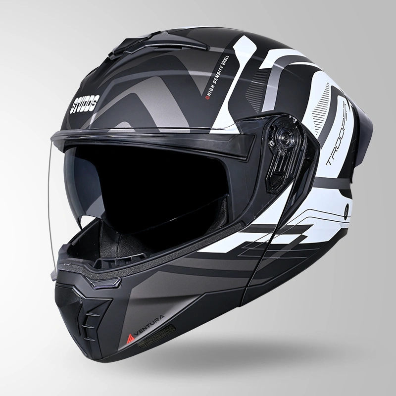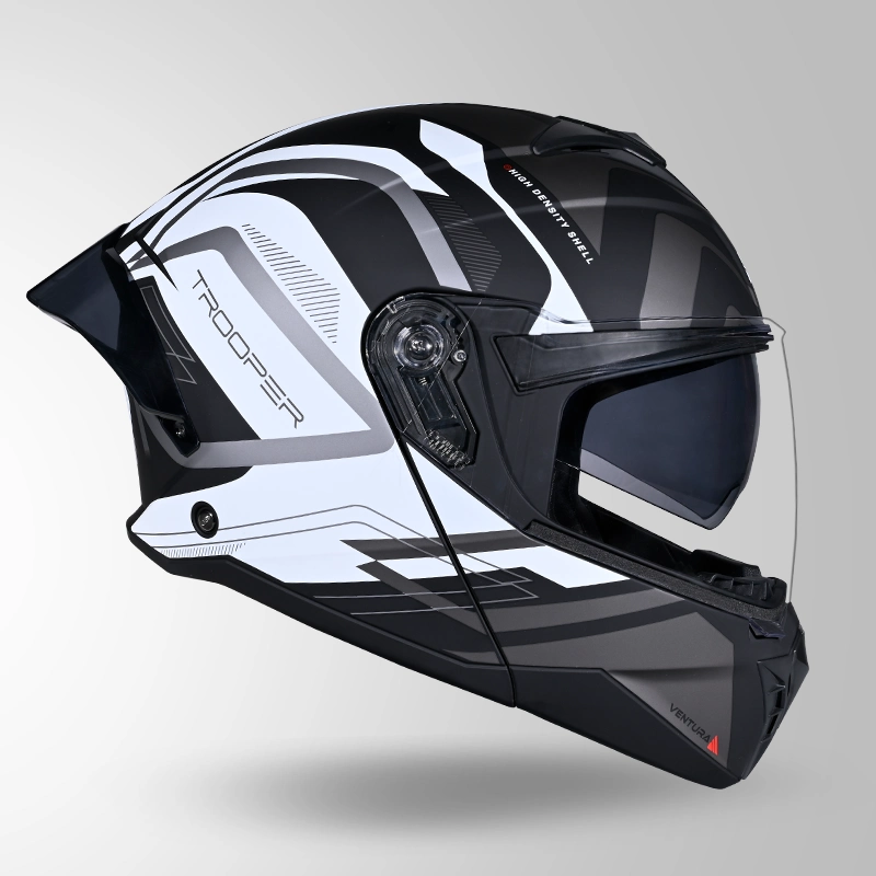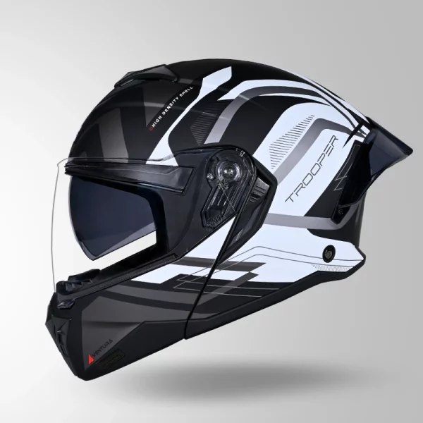 Ride with confidence and modern styling using the Trooper D3 Ventura Decor Matt Black White Helmet, designed to offer a dependable balance of protection, comfort, and refined visual appeal. This helmet is crafted for riders seeking reliable safety along with a premium matt finish suitable for daily commuting and long-distance riding. The helmet features a durable outer shell engineered for strength and everyday riding durability while maintaining lightweight comfort. Its aerodynamic design supports riding stability and helps reduce wind resistance, contributing to smoother performance at varying speeds. The matt black and white decor finish provides a clean, aggressive look that complements a wide range of motorcycles. Inside, the helmet is equipped with comfortable padded interiors designed for extended wear. The inner cushioning offers a snug and supportive fit, improving rider comfort during long journeys. Ventilation channels promote airflow, assisting heat management and enhancing breathability. The visor system delivers clear road visibility while protecting against wind, dust, and debris. Designed for practical riding needs, this helmet suits riders looking for durability, comfort, and premium styling. Key Benefits: Durable outer shell construction Aerodynamic design for riding stability Premium matt black white decor finish Comfortable padded interiors Ventilation for improved airflow Clear visor for enhanced visibility Suitable for city and highway riding