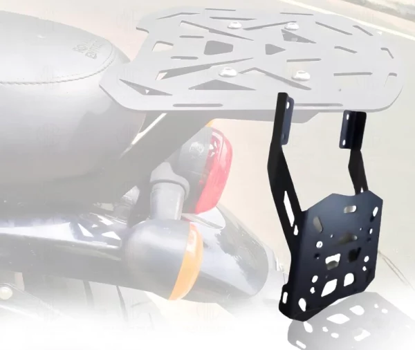This is a heavy-duty rear luggage rack made for the Royal Enfield Interceptor 650 motorcycle, designed to significantly enhance the bike’s cargo-carrying capability for touring, long trips, or daily use. It’s constructed from robust metal that offers strength and rigidity, enabling you to securely mount luggage, duffel bags, gear bags, or a top box without worrying about flexing or instability even on rough roads or extended rides.