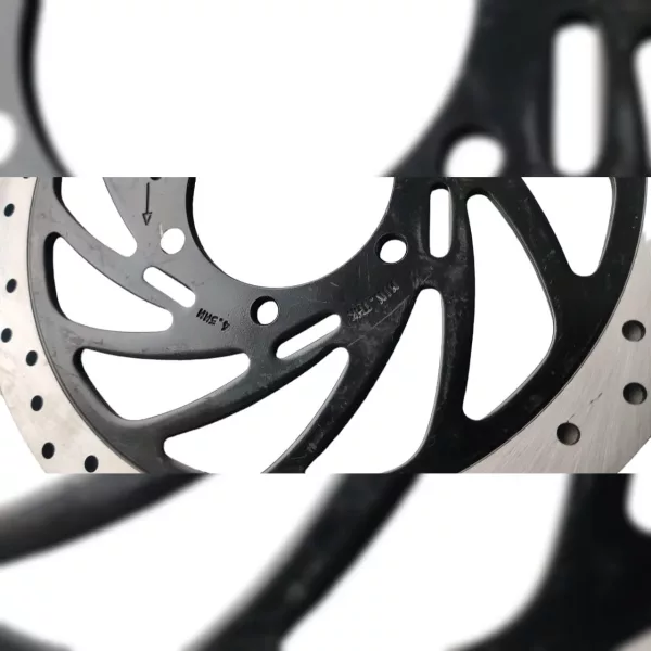Upgrade your braking performance with this TVS Ronin Front Disc Plate (Brake Rotor), designed to deliver strong stopping power, improved safety, and consistent braking response in all riding conditions. The disc plate is a critical component of the braking system, working with brake pads to create friction and slow down the motorcycle effectively. The TVS Ronin uses a 300mm front disc brake setup, making it important to choose a compatible and correctly sized disc plate for proper fitment and performance. This front disc plate is built using high-quality stainless steel / alloy material, ensuring excellent durability, heat resistance, and long-term performance. During braking, the rotor is subjected to high temperatures, and a well-designed disc plate helps in efficient heat dissipation, preventing brake fade and maintaining consistent braking efficiency. The precision-drilled design improves airflow and cooling, while also helping to maintain optimal contact with brake pads. This results in: Better braking response Reduced stopping distance Stable performance in city and highway riding The disc plate is designed for TVS Ronin, ensuring proper alignment with the wheel hub and brake caliper. Correct fitment is crucial to avoid vibrations, uneven wear, or reduced braking efficiency. Over time, disc plates can wear out or develop grooves, leading to reduced braking performance. Replacing the disc plate with a quality unit helps restore smooth braking, rider confidence, and overall safety. Installation should be done carefully to ensure proper torque settings and alignment for optimal performance. Key Benefits: Designed for TVS Ronin (300mm front disc) Strong and reliable braking performance Durable stainless steel / alloy construction Efficient heat dissipation reduces brake fade Improves braking response and safety Precision design for proper fit and alignment Ideal replacement for worn or damaged disc