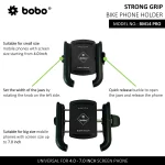 The BOBO BM14 Quick Release Jaw-Grip Mobile Phone Holder is the perfect solution for securely mounting your phone on a bike, motorcycle, or scooter. Designed for maps and GPS navigation, this holder offers a stable grip on your device, even on rough terrains. The quick-release mechanism allows you to effortlessly mount and remove your phone, while the adjustable design ensures compatibility with a wide range of devices.