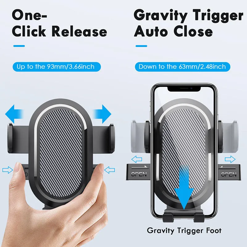 Additionally, the universal clamp design accommodates smartphones of all sizes from 4 to 7 inches, while the car mobile phone holder maintains secure grip without blocking essential ports or buttons for convenient charging and operation.
