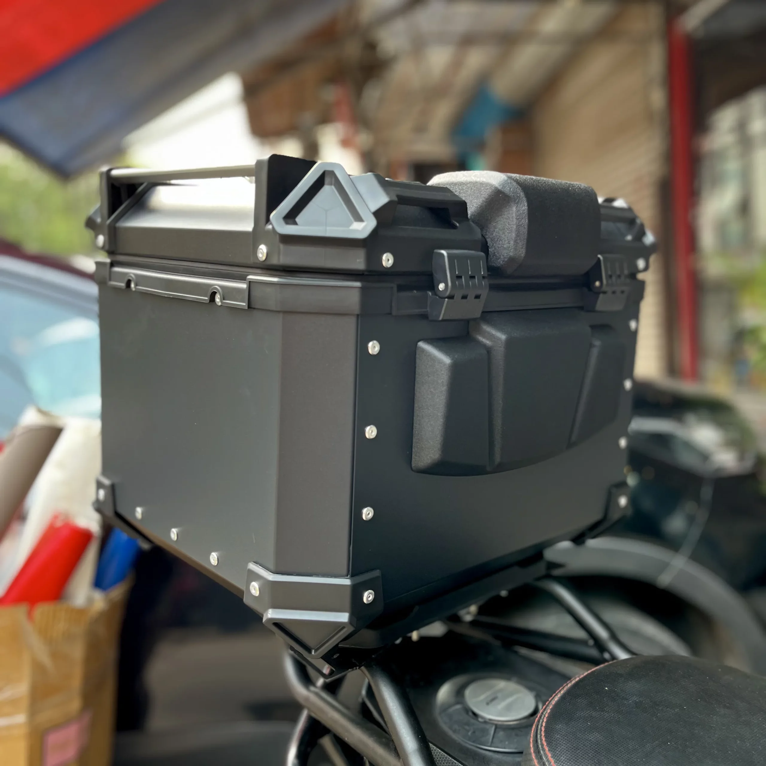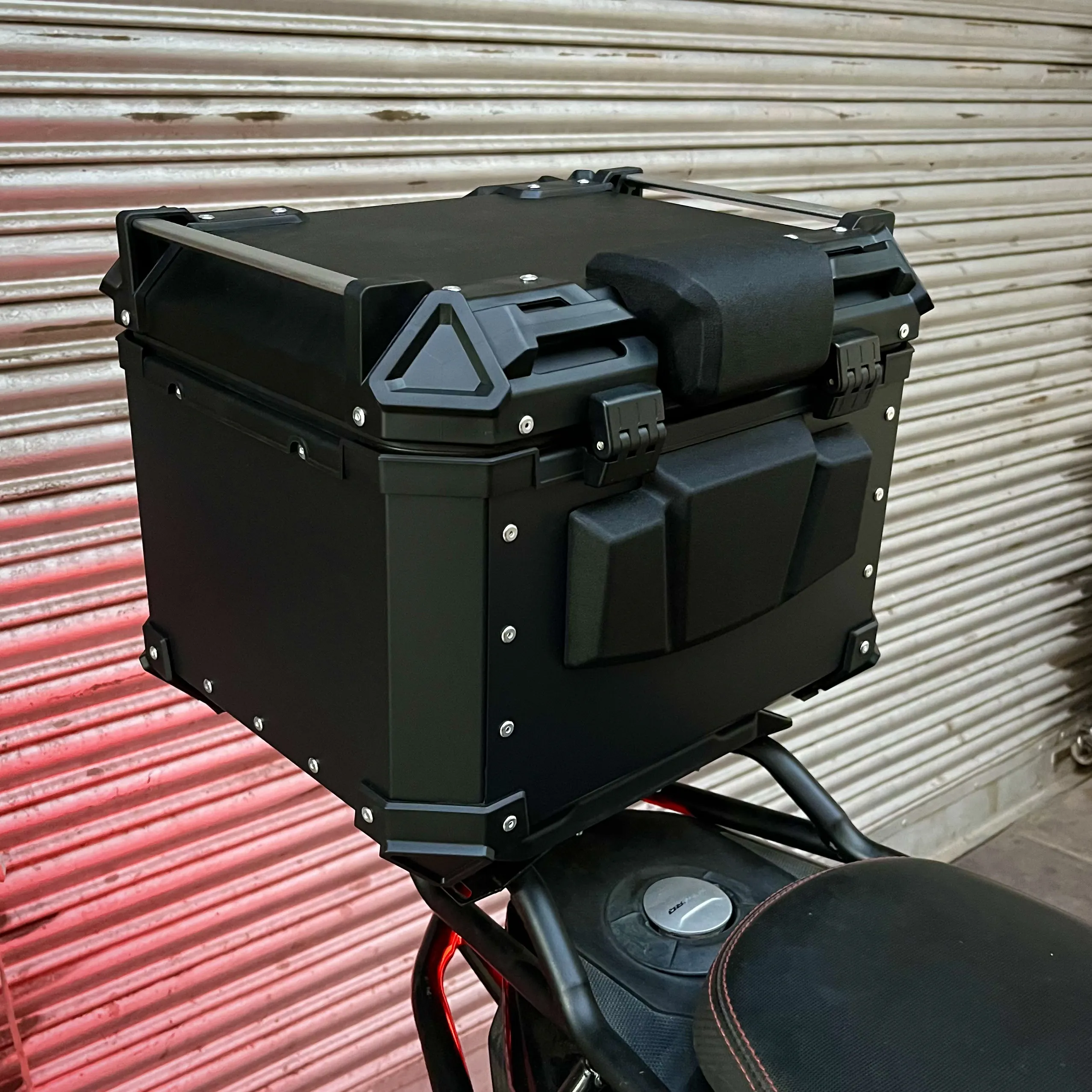 FAUVISM 45L Fingerprint Lock Aluminium Top Box. This high-capacity motorcycle luggage carrier is built with aircraft-grade aluminium alloy, making it both lightweight and extremely tough. The box is equipped with a biometric fingerprint lock system, ensuring that only you can access your gear.