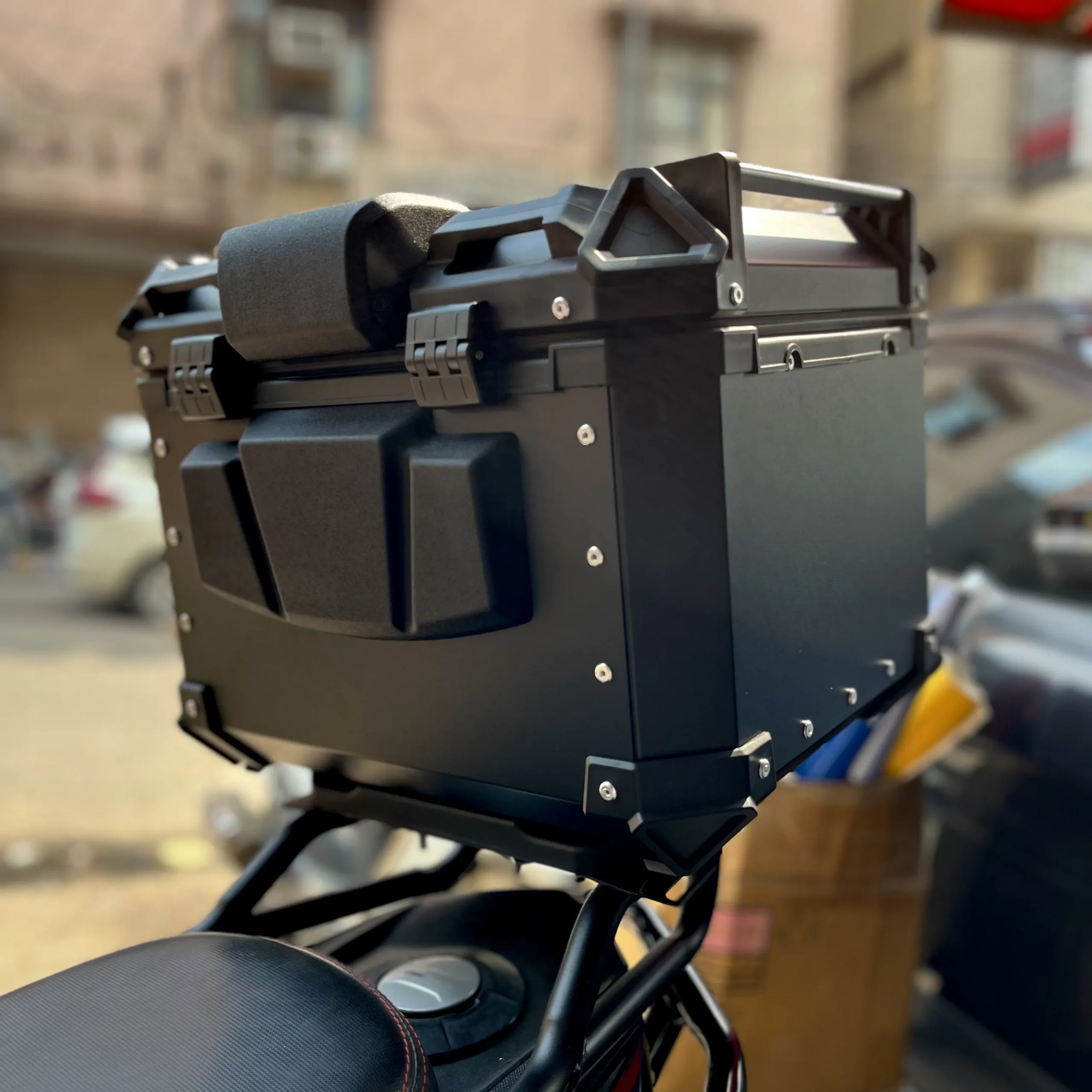 Designed to endure rough terrains and extreme weather, this 45-liter storage box is ideal for long-distance riders and city commuters alike. It offers generous space to carry essentials, tools, gadgets, or a full-face helmet.