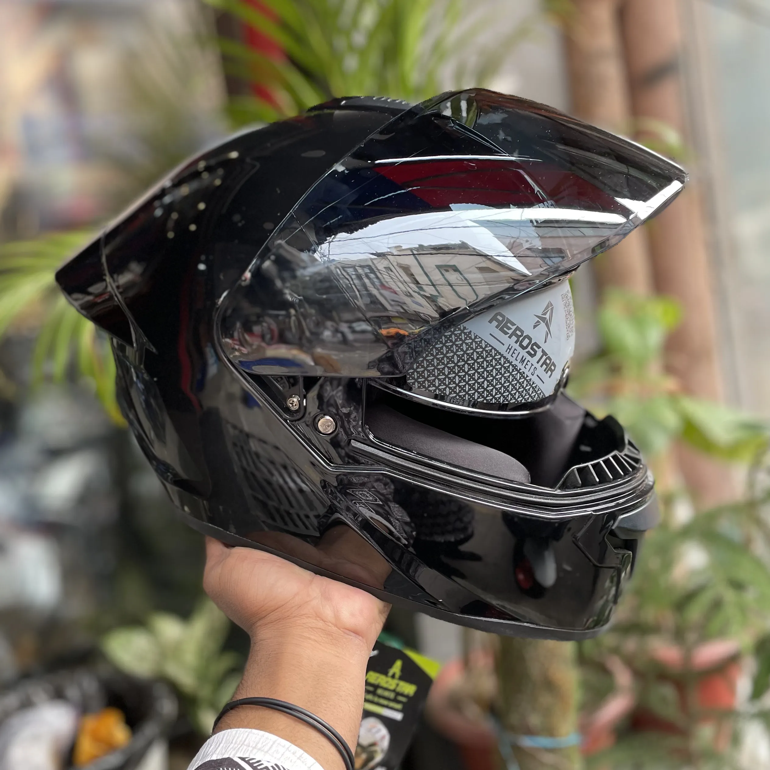 Aerostar Axter CV2 Helmet – Gloss Black | DOT & ISI Certified | Full-Face Protection with Apex & Bolt Features