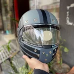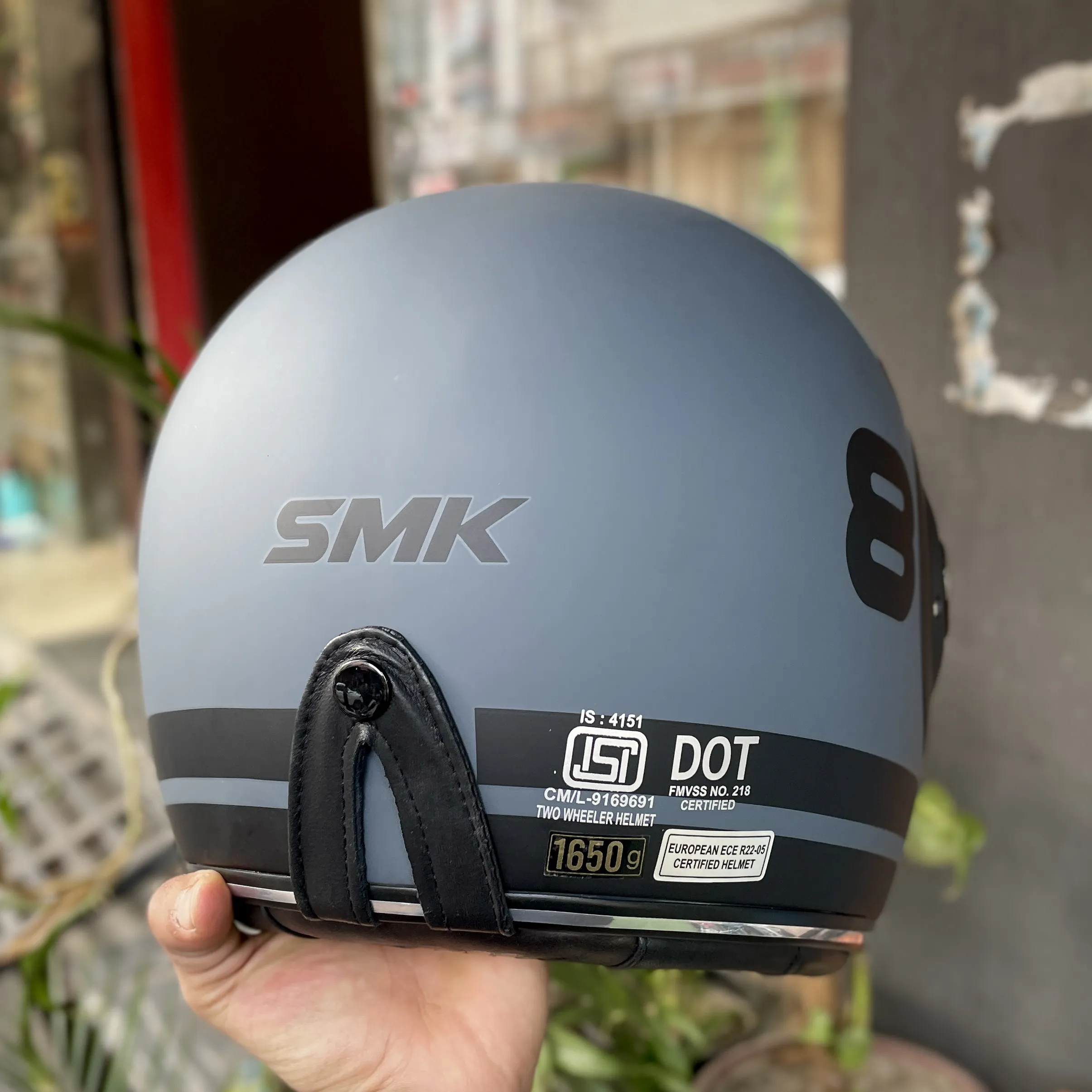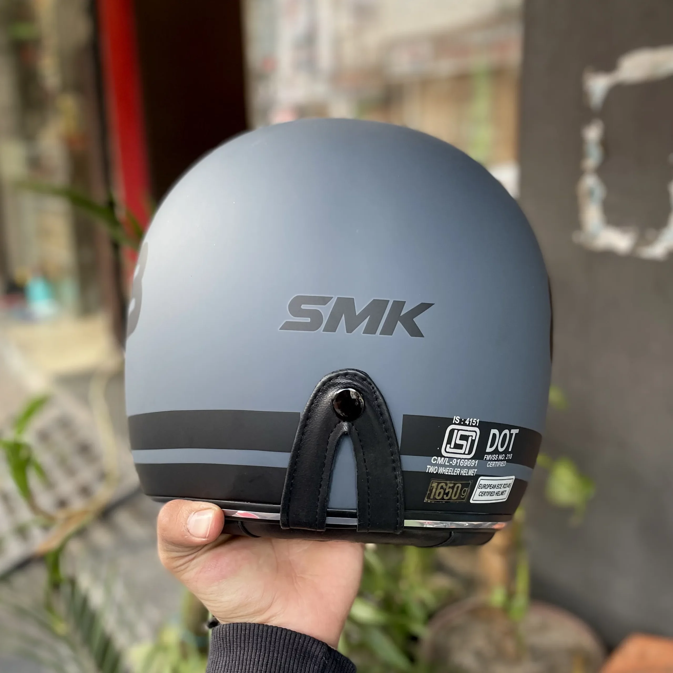 The SMK Retro Ranko Full Face Helmet (Model MA626) is designed for riders who appreciate classic retro styling combined with modern safety and comfort features. Finished in a Matt Black Grey color, this helmet delivers a timeless look while meeting today’s riding demands for protection and usability. Built with a strong outer shell, the helmet is engineered to provide reliable impact protection for daily commuting as well as longer highway rides. Its full-face design ensures comprehensive coverage, helping shield the rider from wind, dust, debris, and road impacts. The retro-inspired shell shape enhances visual appeal while maintaining a balanced and stable fit during rides. The helmet comes equipped with comfortable inner padding that provides a snug fit and helps reduce fatigue during extended use. The interiors are designed to offer proper ventilation and breathability, making the helmet suitable for varied riding conditions. A secure chin strap fastening system ensures the helmet stays firmly in place throughout the ride. The clear visor offers wide field of vision, supporting better awareness of surrounding traffic and road conditions. It protects the rider from wind and airborne particles while maintaining clear visibility during both day and night rides. With certifications for ISI, DOT, and ECE standards, this helmet meets essential safety requirements, making it a dependable choice for riders seeking style without compromising protection. Key Highlights: Full face helmet with retro-inspired design Matt Black Grey finish for classic styling Strong outer shell for reliable protection Comfortable inner padding for long rides Wide-vision clear visor Secure chin strap system ISI, DOT & ECE certified Suitable for daily commuting and touring