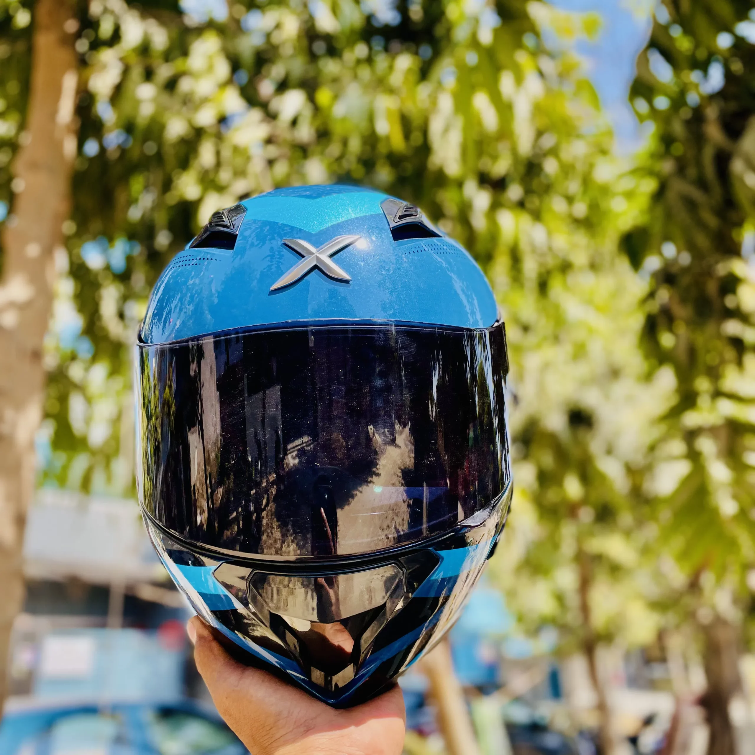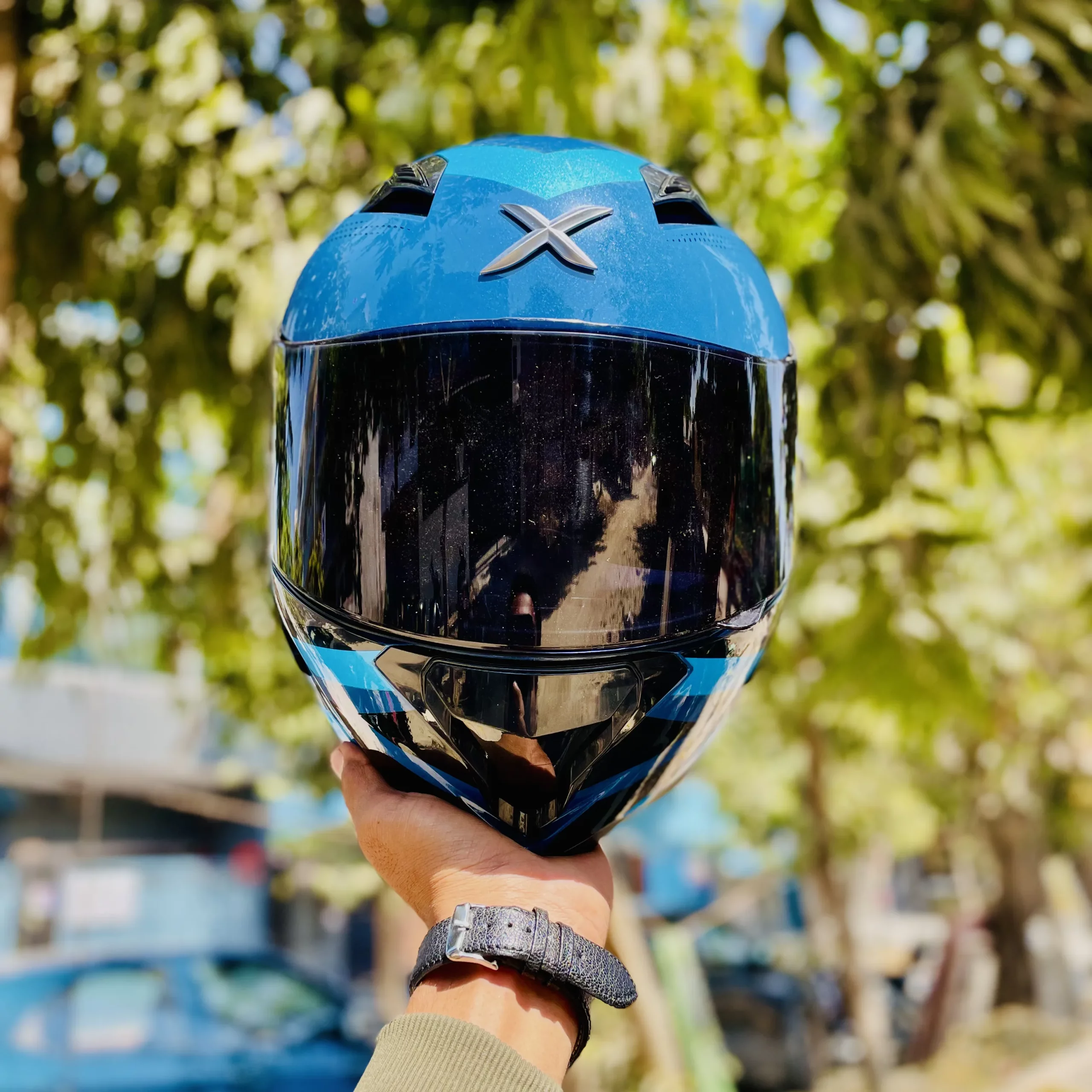 Axor Hunter Cornet Limited Edition Glossy Full Face Helmet in Blue Grey with Black Visor ISI DOT ECE 22.06 Certified